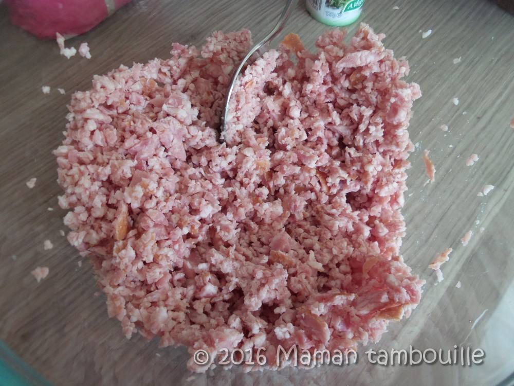 Mixer les saucisses de Montbéliard et les mettre dans un saladier.