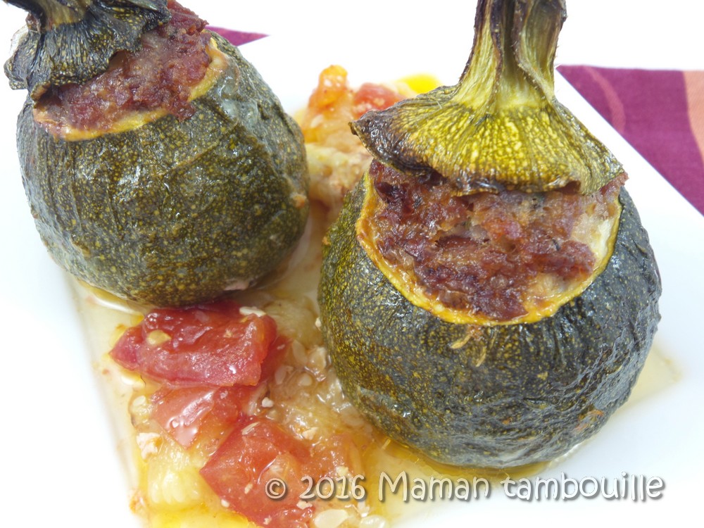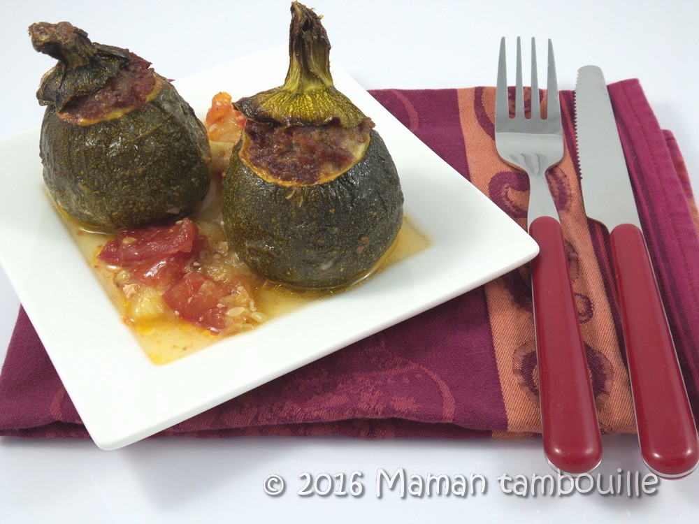 J’aime beaucoup les plats de farcis. Pour changer des tomates, j’ai voulu cette fois faire des courgettes, ça change un peu. Pour la farce, j’ai innové car il me restait 2 saucisses de Montbéliard à consommer rapidement alors j’ai fait un mélange de farce à tomate et de saucisses de Montbéliard.
