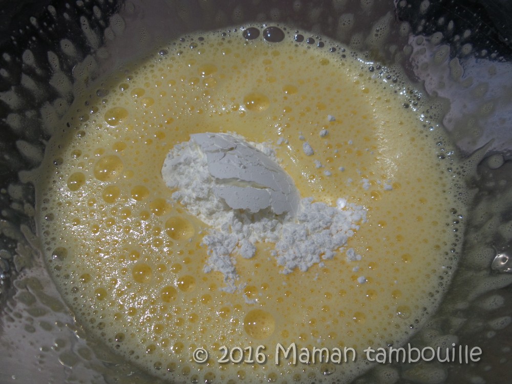 Ajouter la maïzena et fouetter à nouveau.