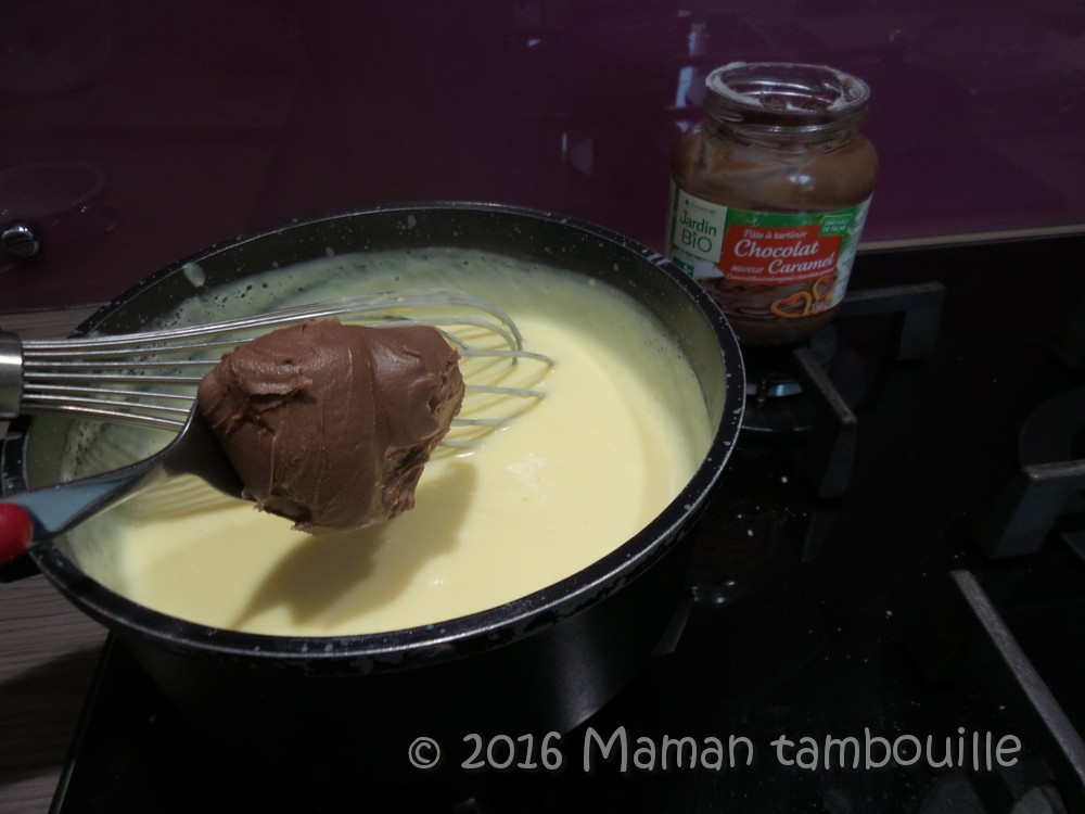 Hors du feu, ajouter la (grosse !) cuillère de pâte à tartiner.