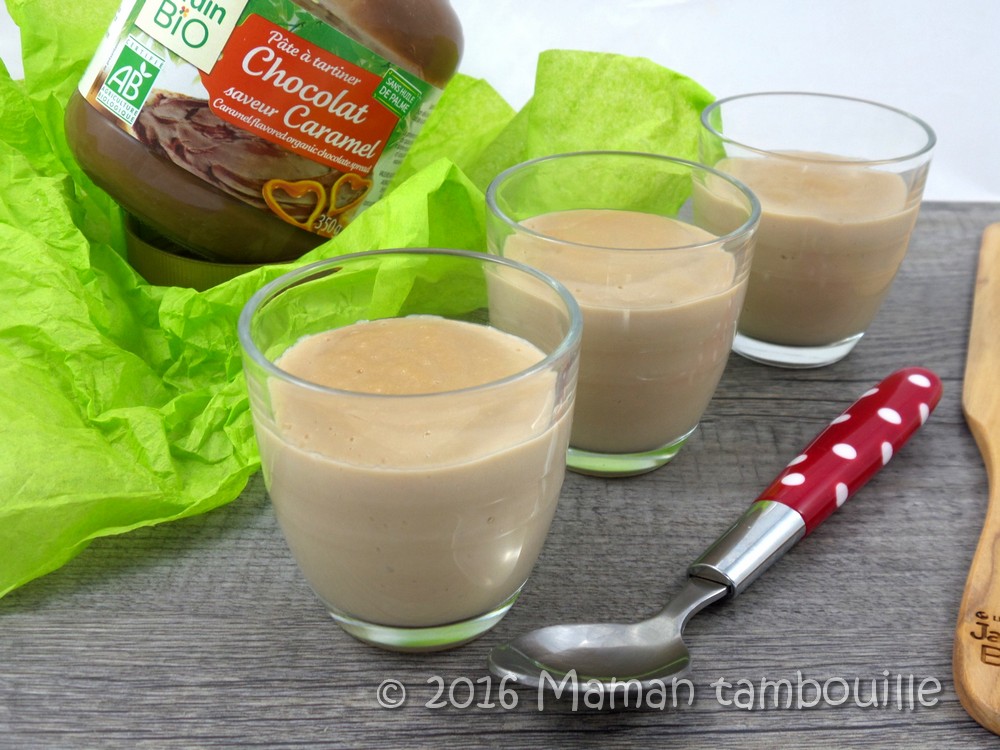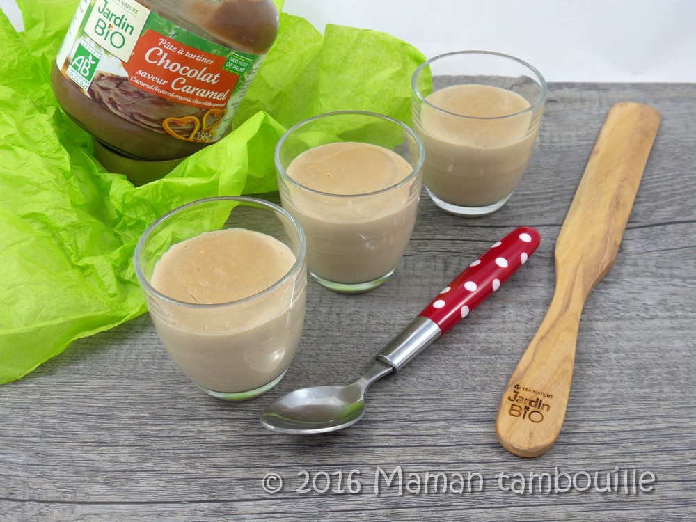C’est vraiment très facile de faire des crèmes dessert et on peut varier les plaisirs avec des parfums différents. Pour cette fois, j’ai fait mes petites crèmes à la pâte à tartiner chocolat saveur caramel Jardin Bio. Une crème toute douce qui rappelle l’enfance, petit réconfort du soir pour se consoler du mauvais temps actuel.