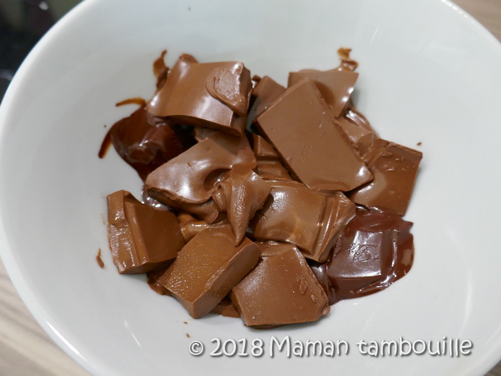 - 150g de chocolat pâtissier (pour moi 30g de chocolat noir + 120g de chocolat au lait)