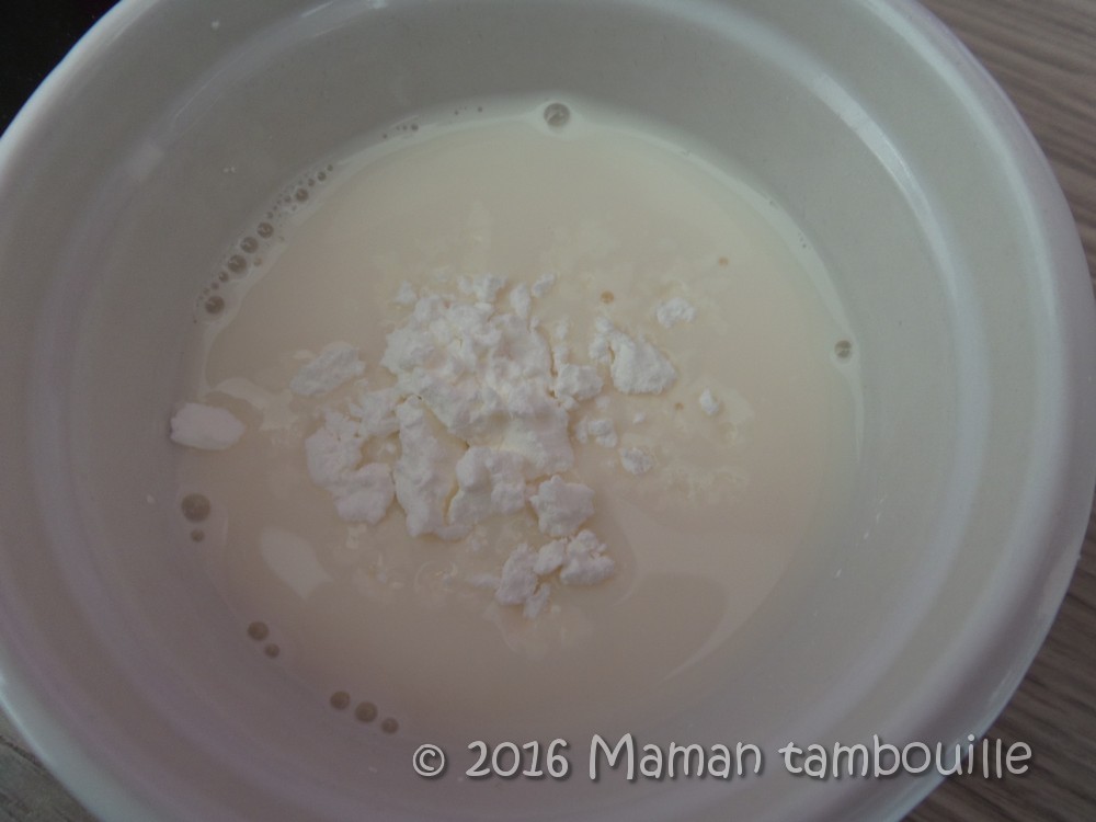 Ajouter la maïzena dans le ramequin de lait et mélanger.