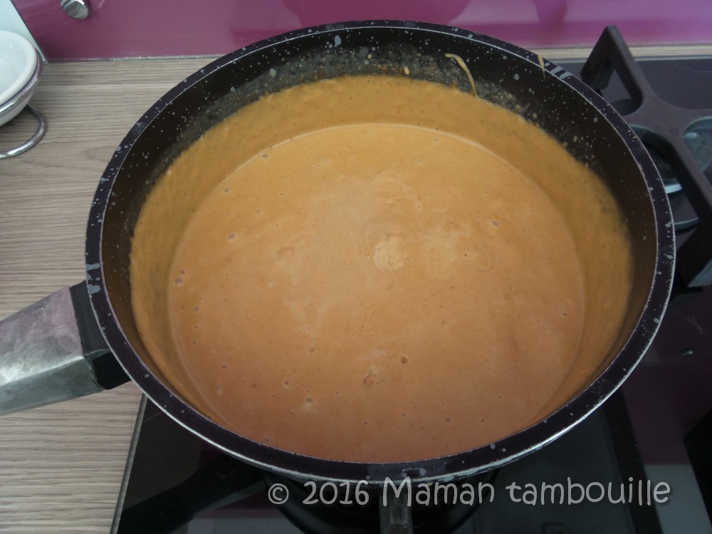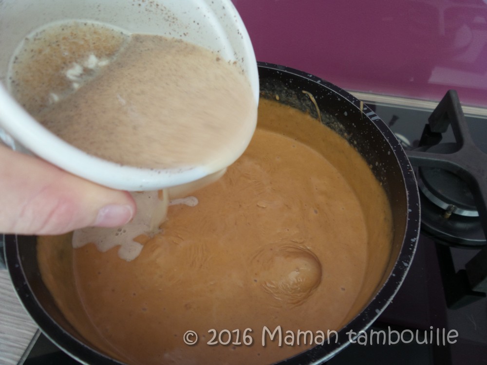 Verser dans la crème puis cuire à feu doux en mélangeant jusqu’à épaississement.
