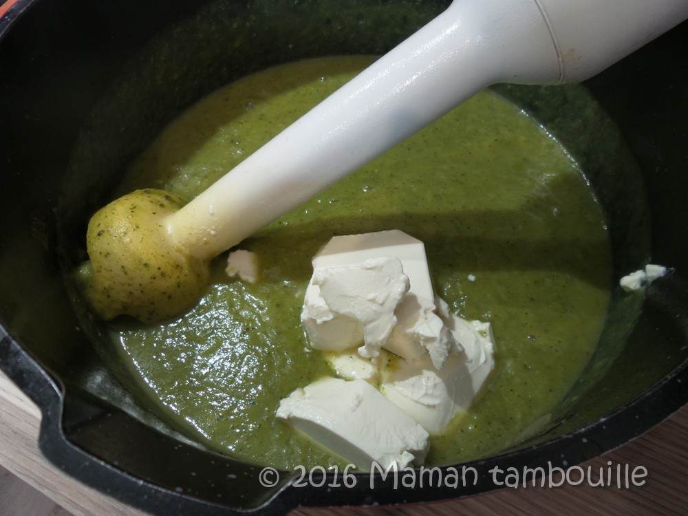 Mixer puis ajouter le fromage frais et mixer à nouveau.
