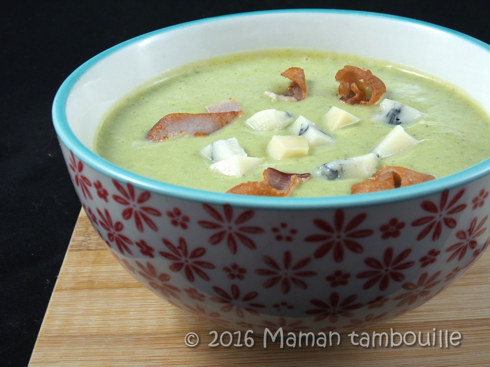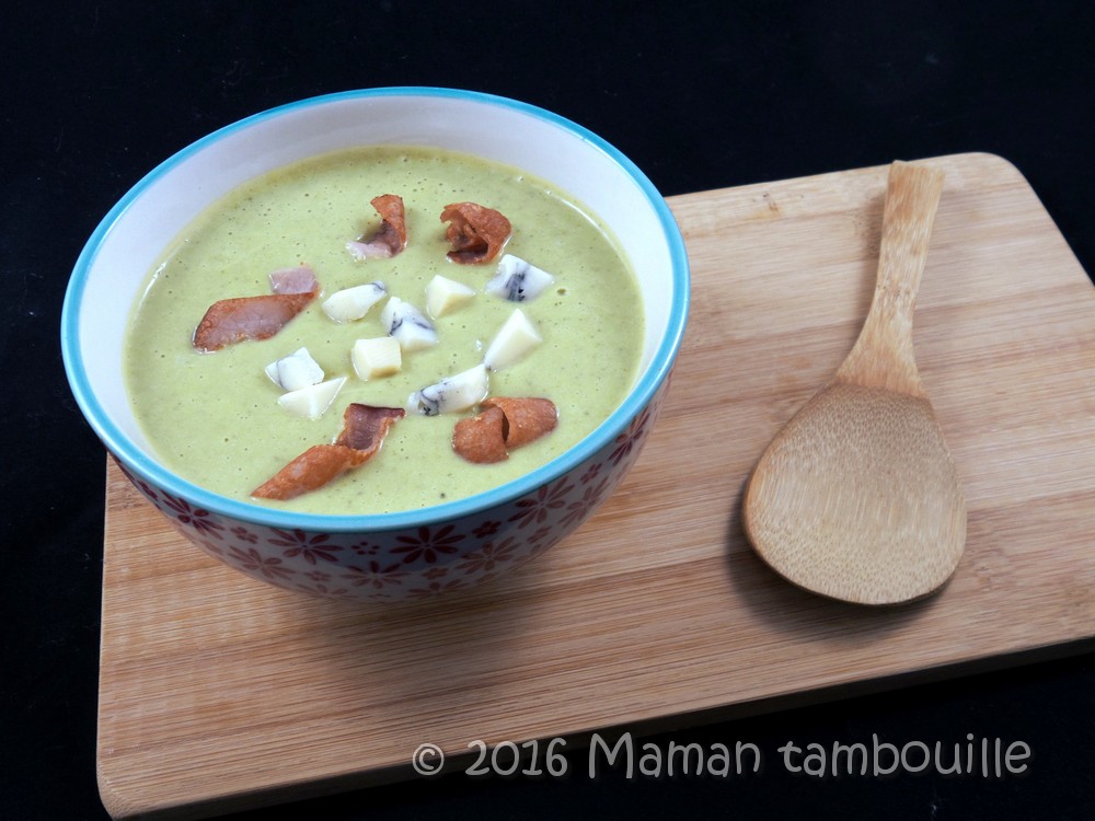 Testée aujourd’hui, nous avons bien aimée cette recette vite faite. Le bacon avec les brocolis se marient très bien. Je referai sûrement ce bon velouté. En revanche, et bien que nous apprécions beaucoup ce fromage, je n’ajouterai pas les petits cubes de morbier. Nous les avions mis à part, goûté la soupe avec et sans eux. C’est mieux sans morbier. Quitte à terminer le repas par un bon morceau de morbier. Merci à vous pour cette recette sympathique !