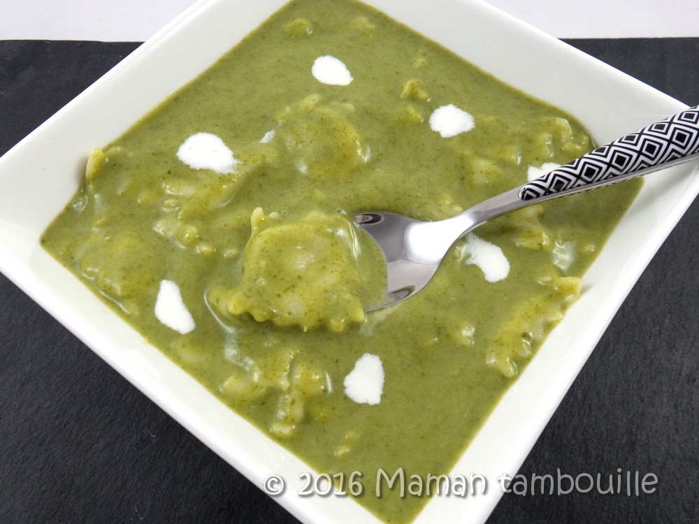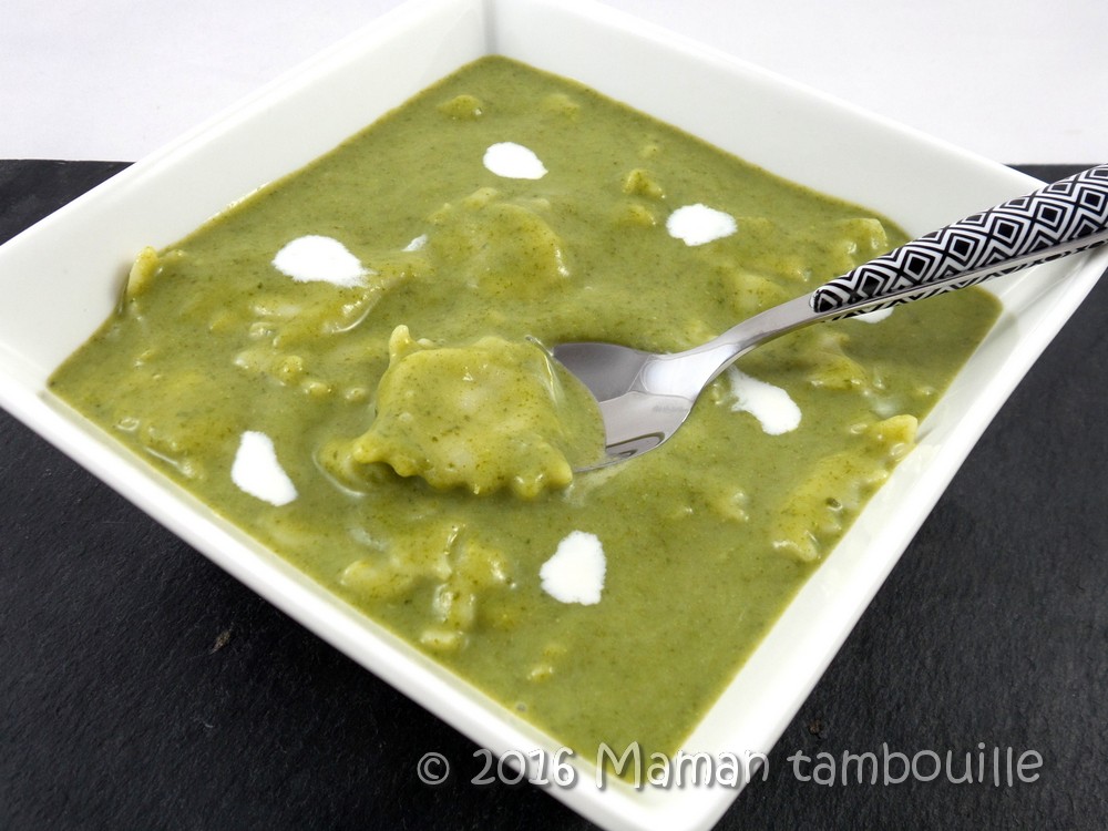 Cette fois, j’ai voulu ma soupe un peu plus consistante et gourmande alors j’ai tenté d’y ajouter des ravioles de Royans (les petites ravioles farcies de comté et de persil). Bonne idée ! Cette soupe est très sympa et devient un repas complet du soir.