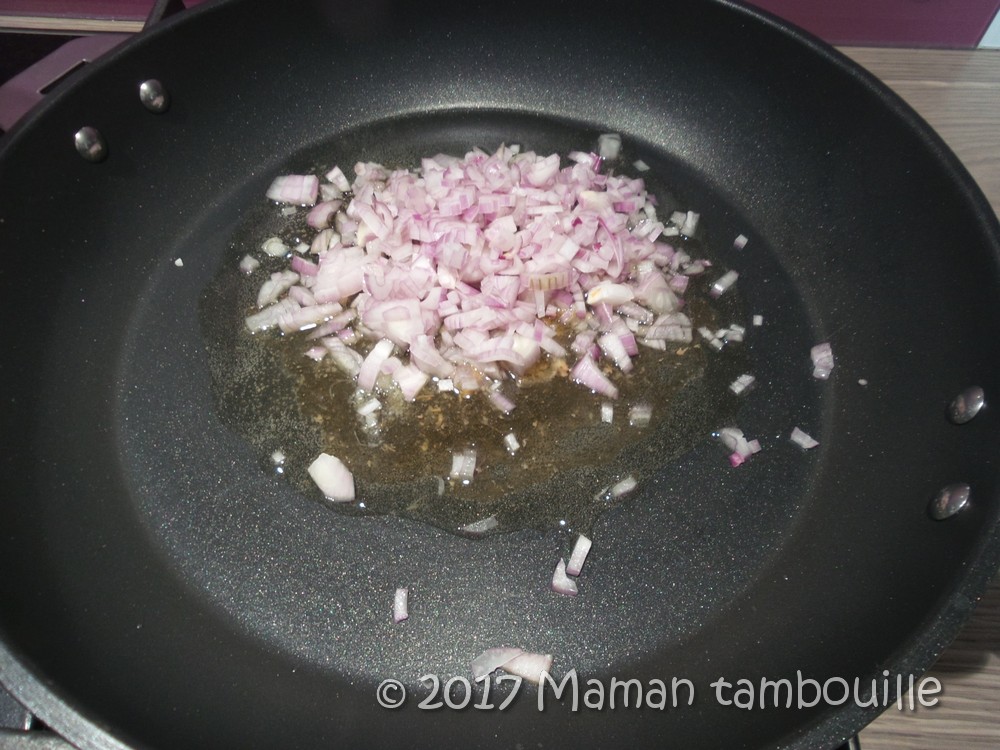 Ajouter 2 échalotes finement émincées et faire revenir à feu doux.
