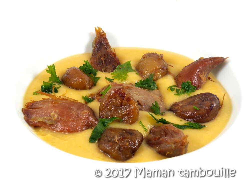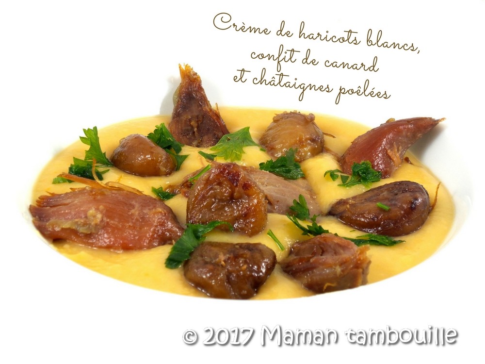 une belle assiette avec cette crème d’haricots blancs, et de confit bonnes fêtes de fin d’année