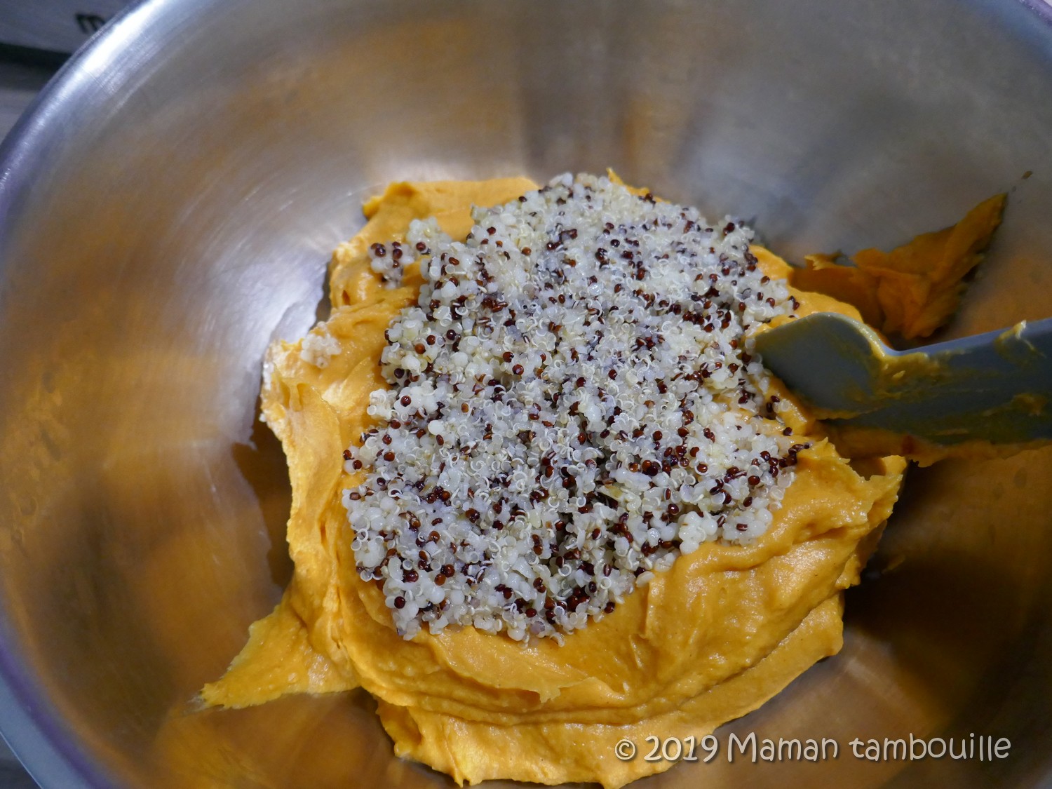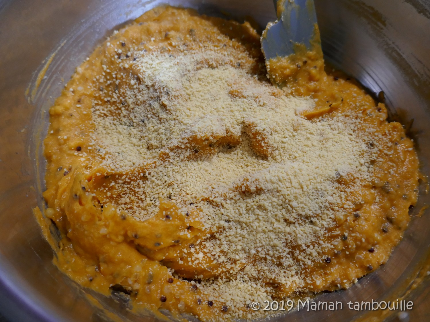 Mélanger avec une spatule puis ajouter la chapelure.