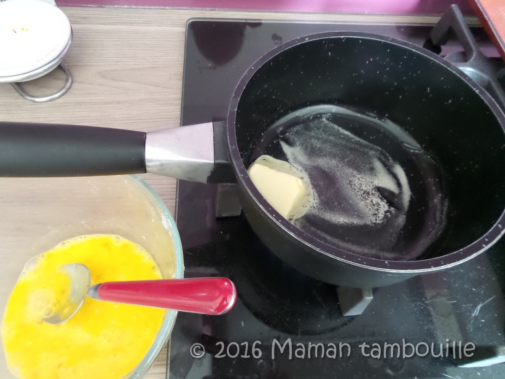 Faire fondre environ 20g de beurre dans une casserole (anti adhésive de préférence).