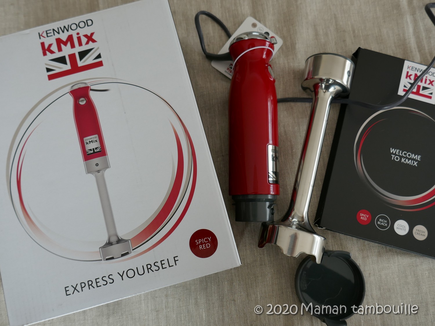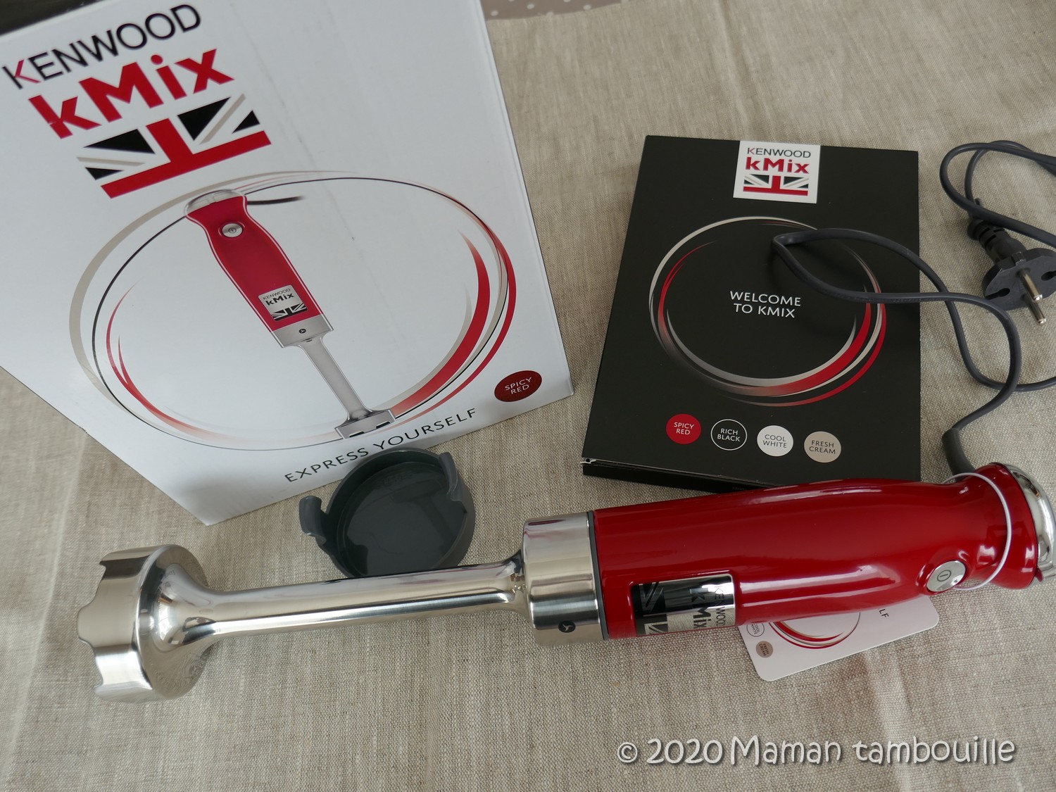 De mon côté, j’ai reçu un pied mixeur Kenwood kMix. Le mien étant tombé en panne dernièrement, je suis super contente de ce nouveau venu à la maison. Et il bien costaud, assez lourd, avec 3 belles lames pour mixer encore plus vite et surtout, carrément silencieux. Mon vieux pied à soupe, je l’aimais bien quand même mais qui a fait son temps … disons que c’est l’un des premiers electro que j’ai eu quand on était étudiants alors, pffiooouuu, ça fait loin ! Mais bon, quand je faisais de la soupe, je crois bien que tout le village était au courant tellement il étai bruyant. Celui ci est silencieux, c’est super agréable.