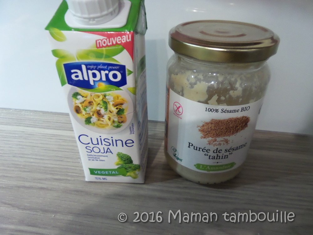 - 1 cuillère à soupe de tahini (purée de sésame)