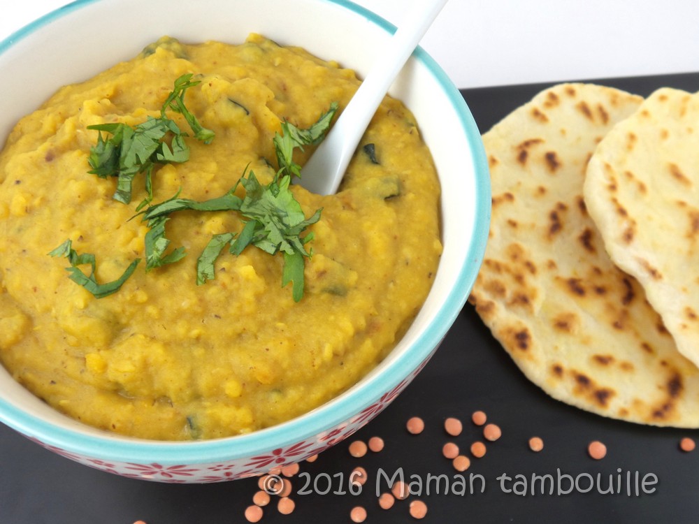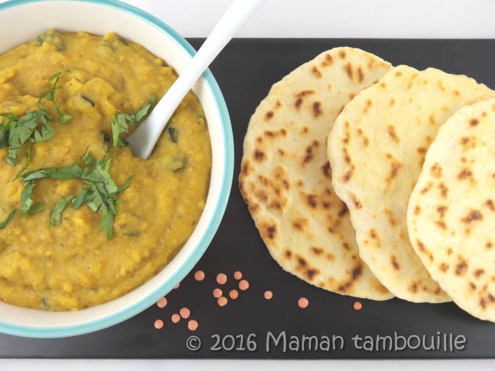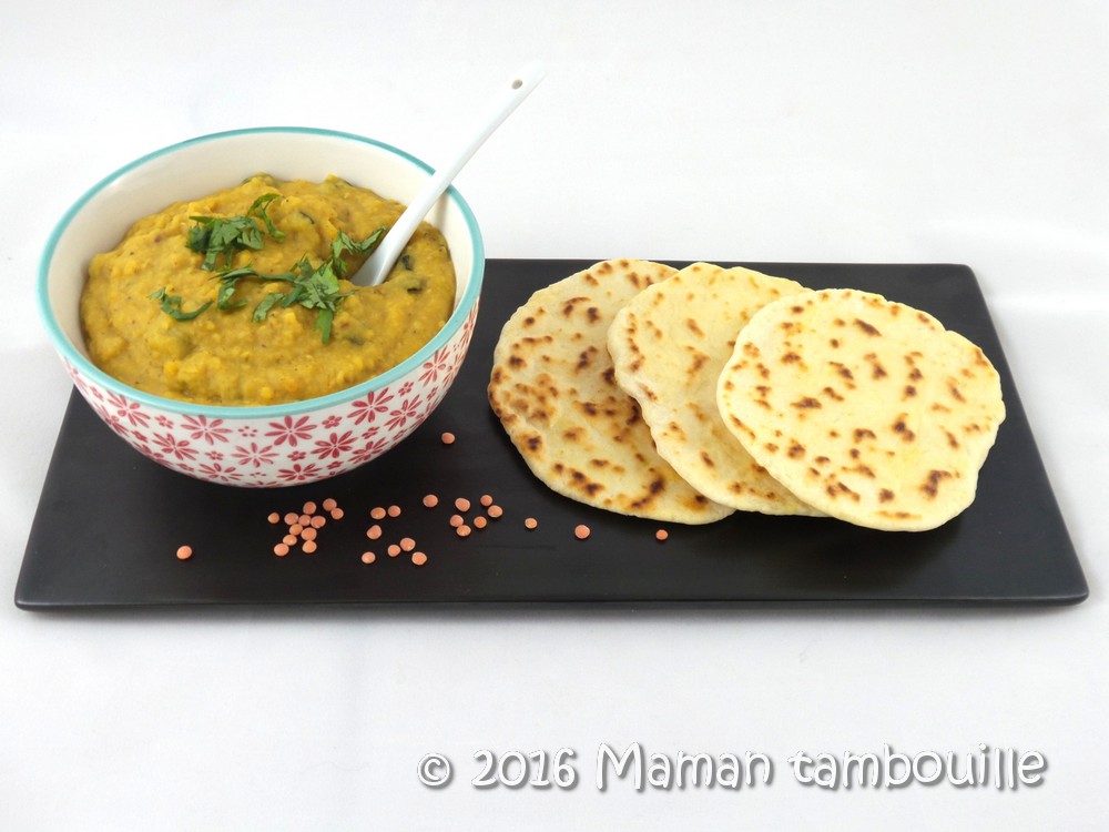 J’ai fait un peu à ma sauce, fonction des ingrédients que j’avais à la maison. Et, pour accompagner ce dahl, vous reconnaîtrez les naans express dont je vous avais parlé cette semaine. Il m’a fallu à peine 45 min pour préparer (cuisson comprise) cette assiette dahl/naans. Un repas du soir qui change et préparé tout de même assez rapidement.