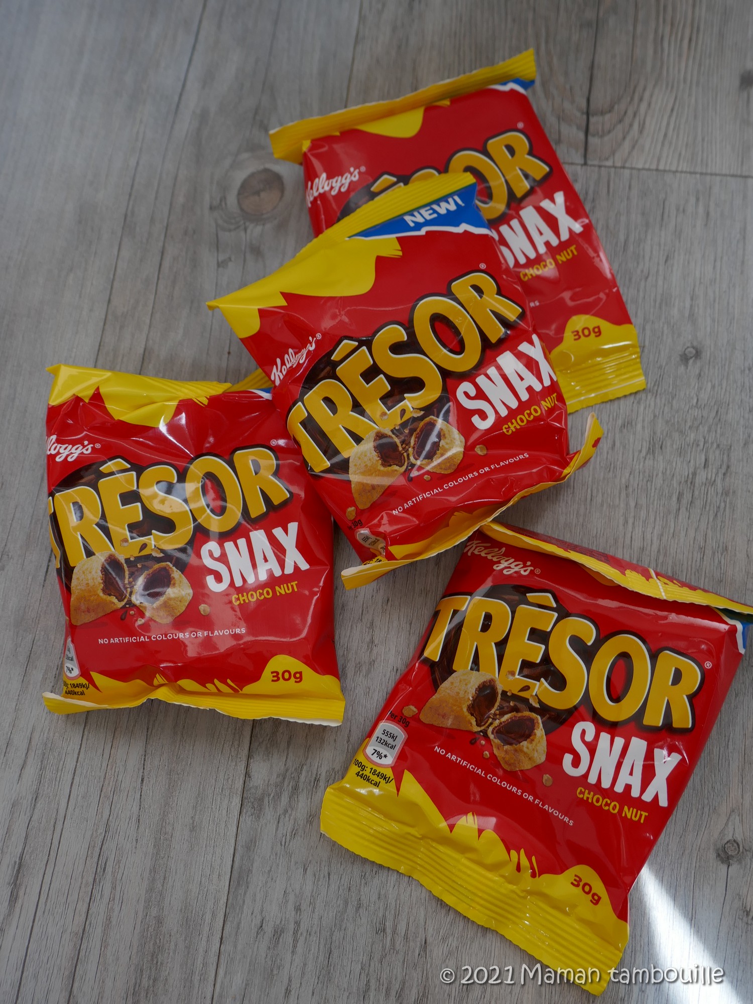Ce sont les céréales préférées de mes enfants. Ce sont les mêmes céréales que celles vendues en grosse boite mais dans des petits sachets individuels. Pas trop d’intérêt à mon sens mis à part produire des déchets supplémentaires (d’habitude, je prends la boite de céréales d’1Kg, pour l’équivalent ici, ça ferait 33 petits sachets !) et, je suppose, payer plus cher au kilo. Pour le coup, même si mes enfants aiment ces céréales, je ne cautionne pas cette version …