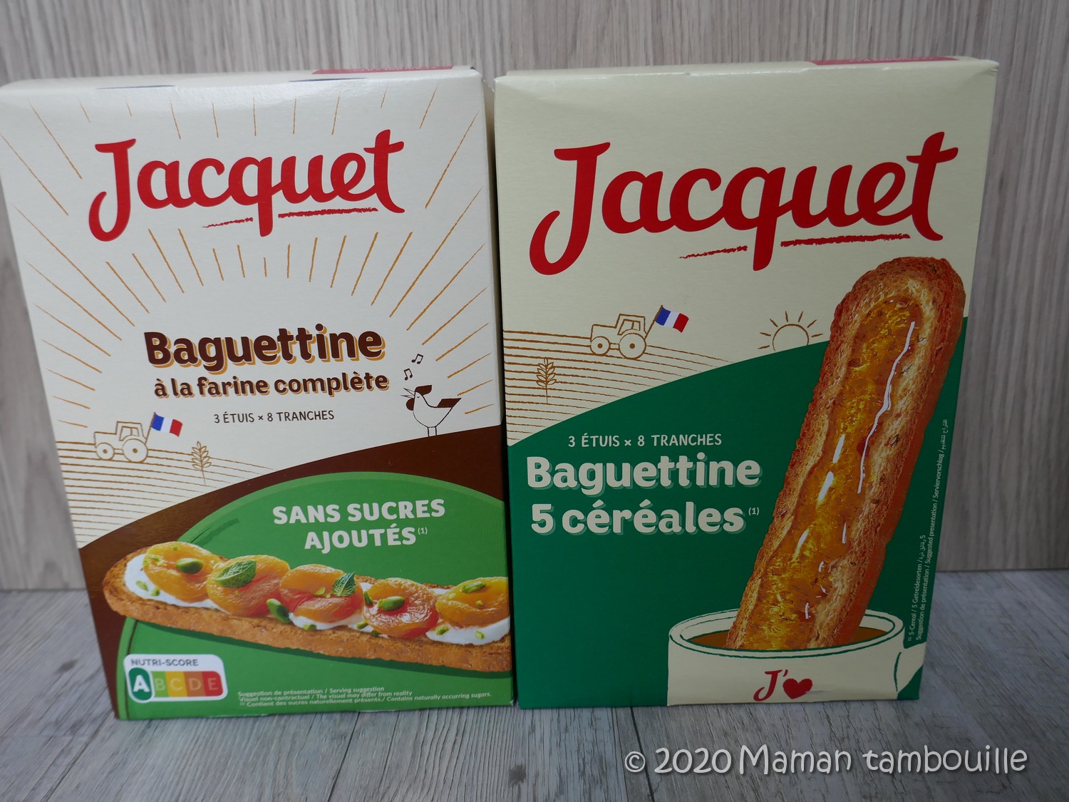 - des tartines grillées Baguettine de Jacquet. 1€72 et 1€79