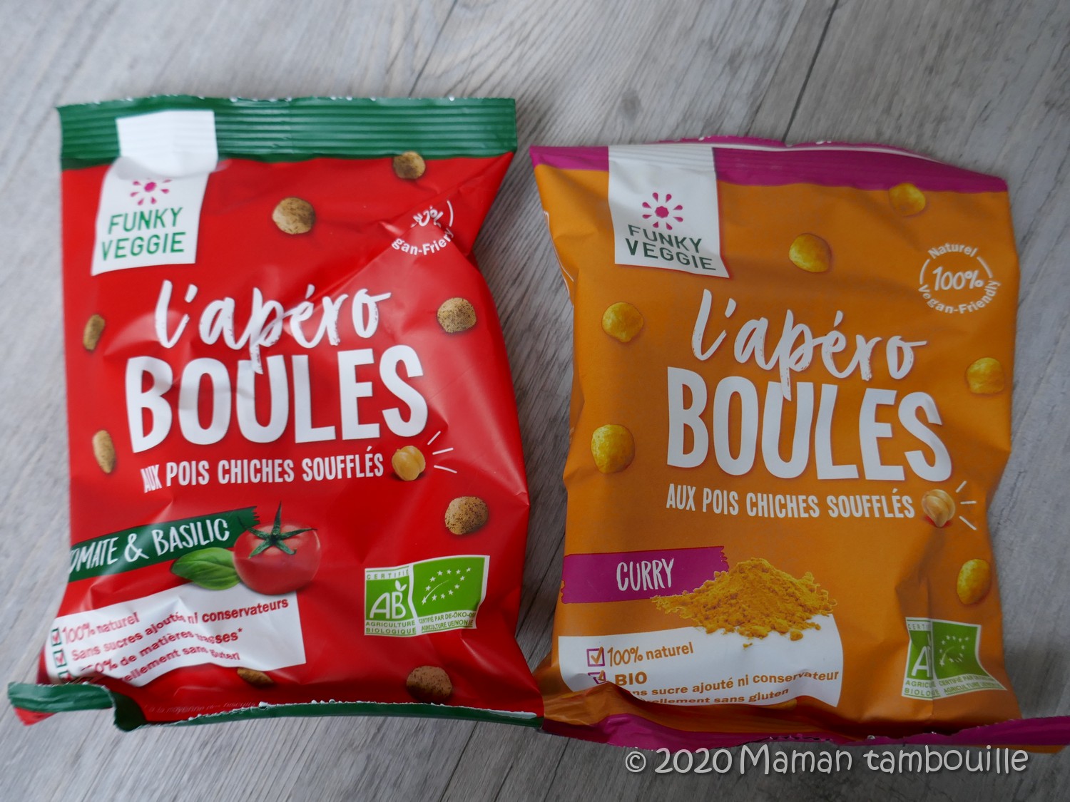 - des sachets Bio de boules apéro de pois chiches soufflés Funky Veggie. 1€50 le sachet