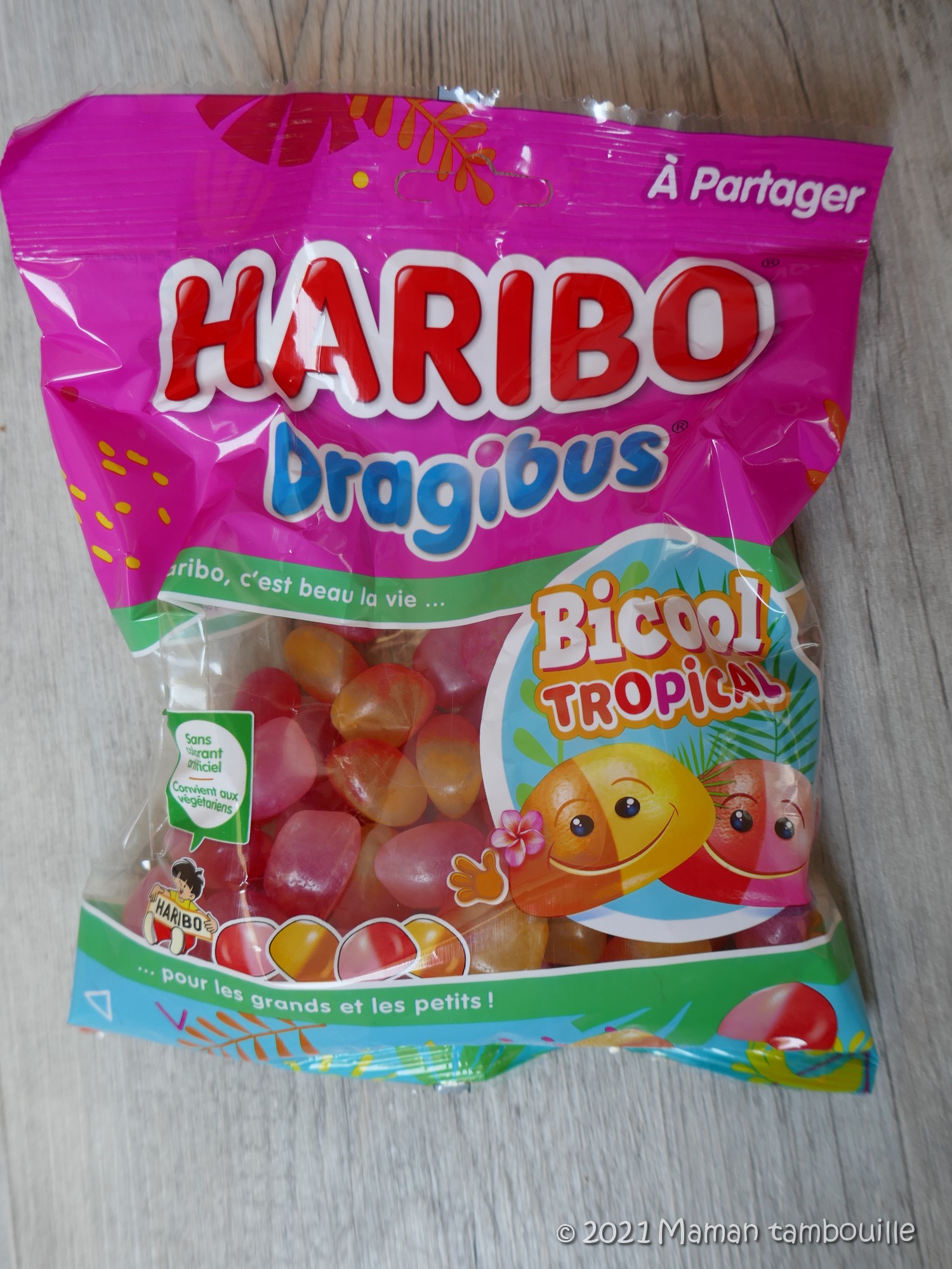 Des dragibus bi-goûts sans colorants artificiels et sans gélatine pour convenir aussi aux végétariens. La présentation est vendeuse mais nous n’avons pas trop aimé les goûts tropicaux (alors qu’on adore les dragibus habituellement).