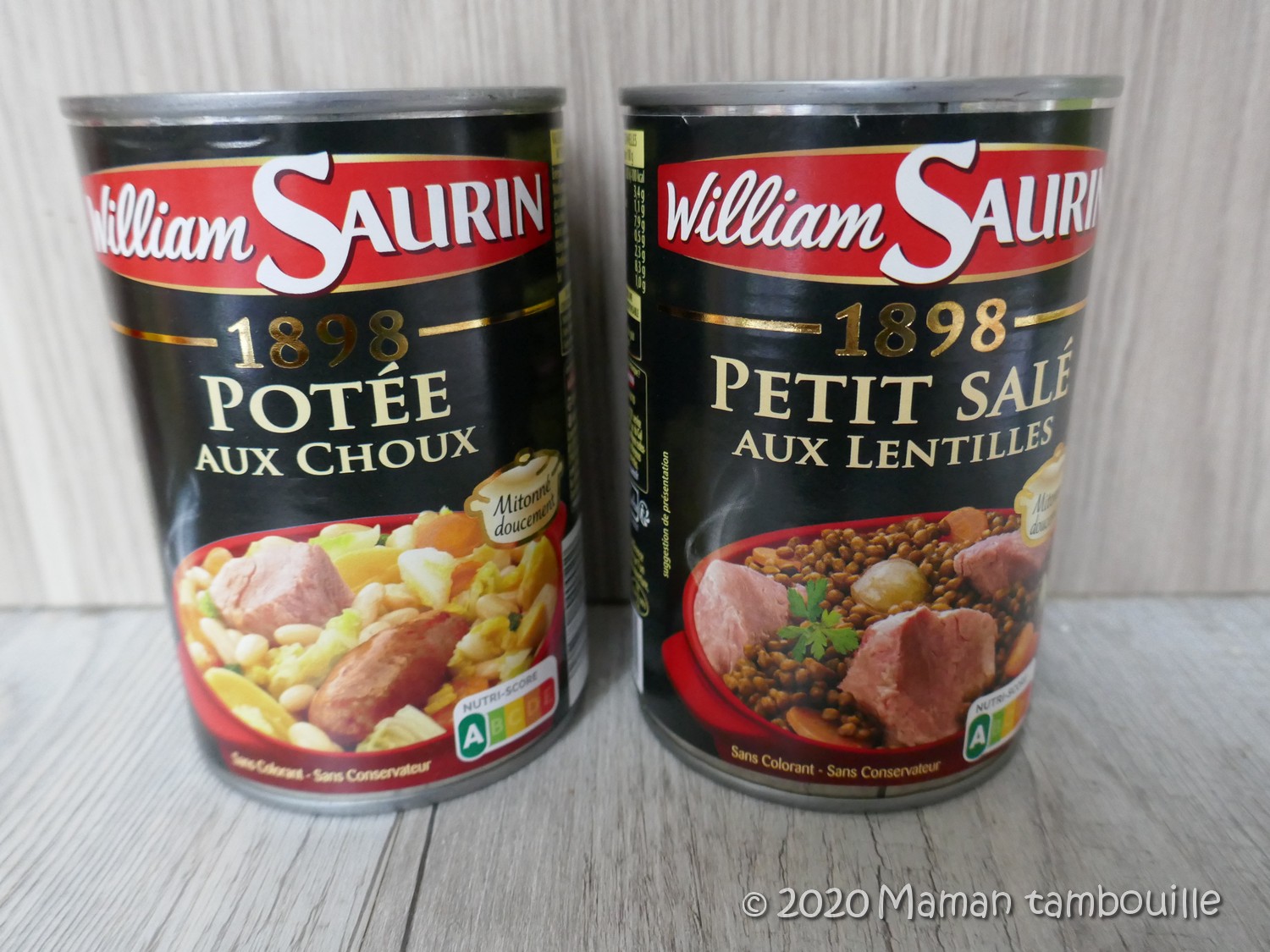 • des boites Gamme 1898 William Saurin de potée aux choux et petit salé aux lentilles. Les abonnés ont reçu un seul choix.