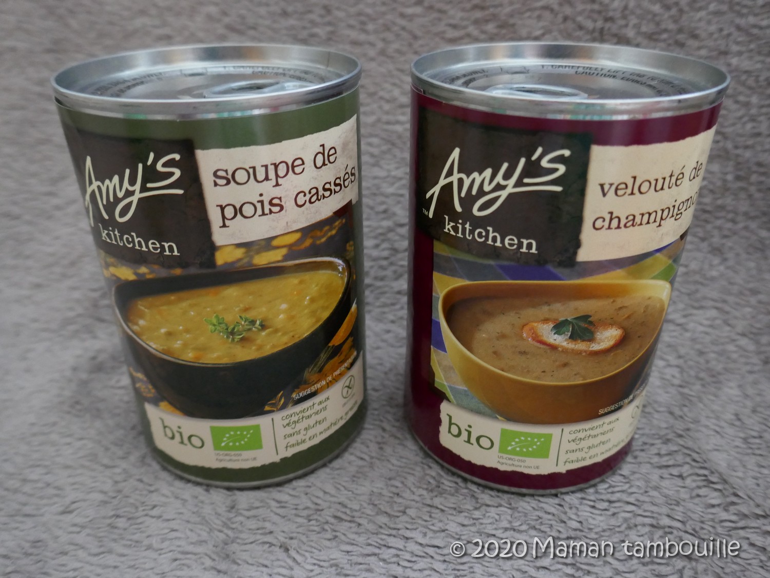 - de la Soupe Bio Pois Cassés ou Velouté Champignons Amy’s Kitchen. Prix: 2€59. Les abonnés ont reçu une boite.
