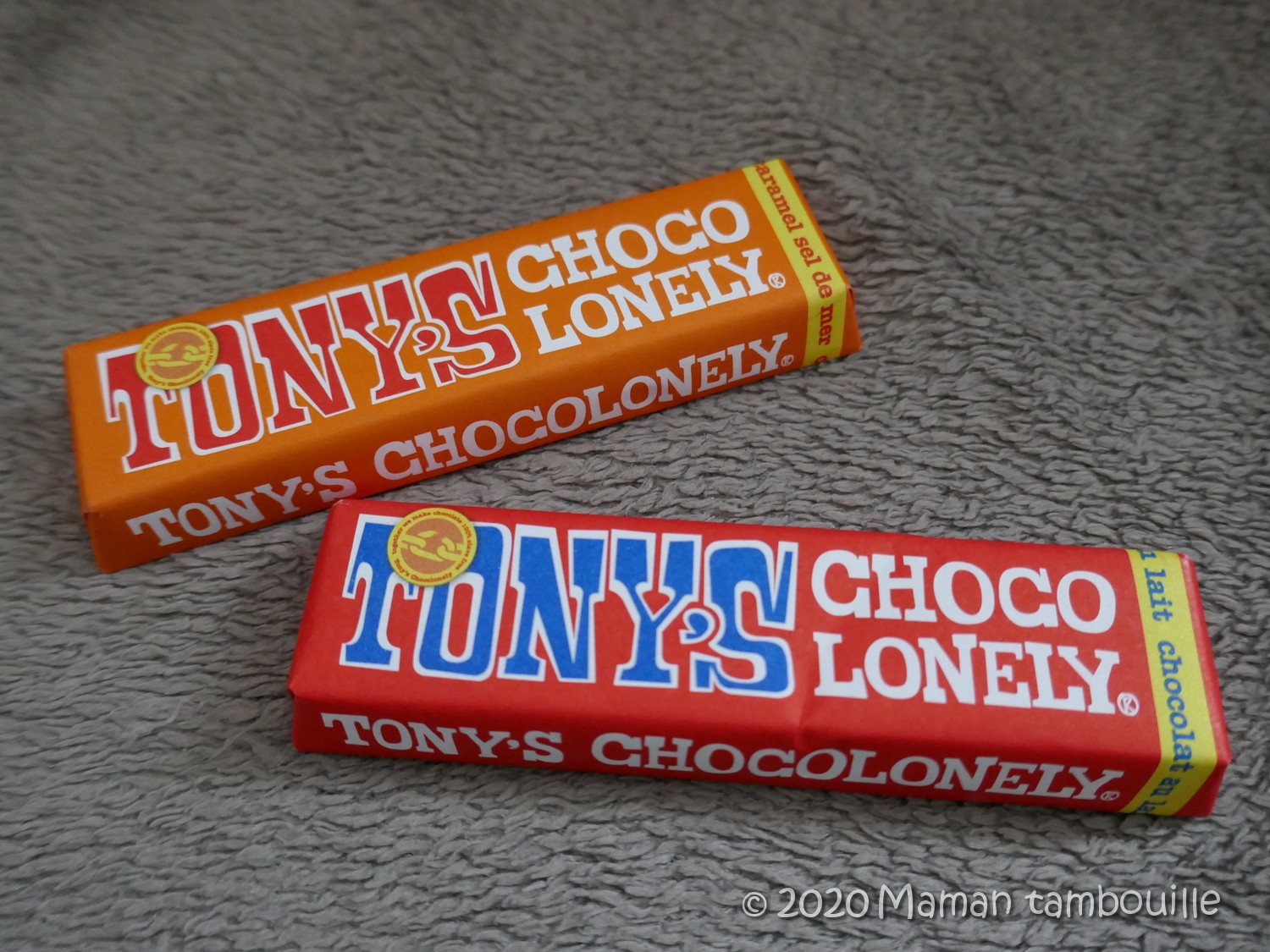 - des Barres Chocolat Lait Caramel ou Chocolat Lait Tony’s Chocolonely. Prix: 1€70 l’unité. Les abonnés ont reçu une barre.