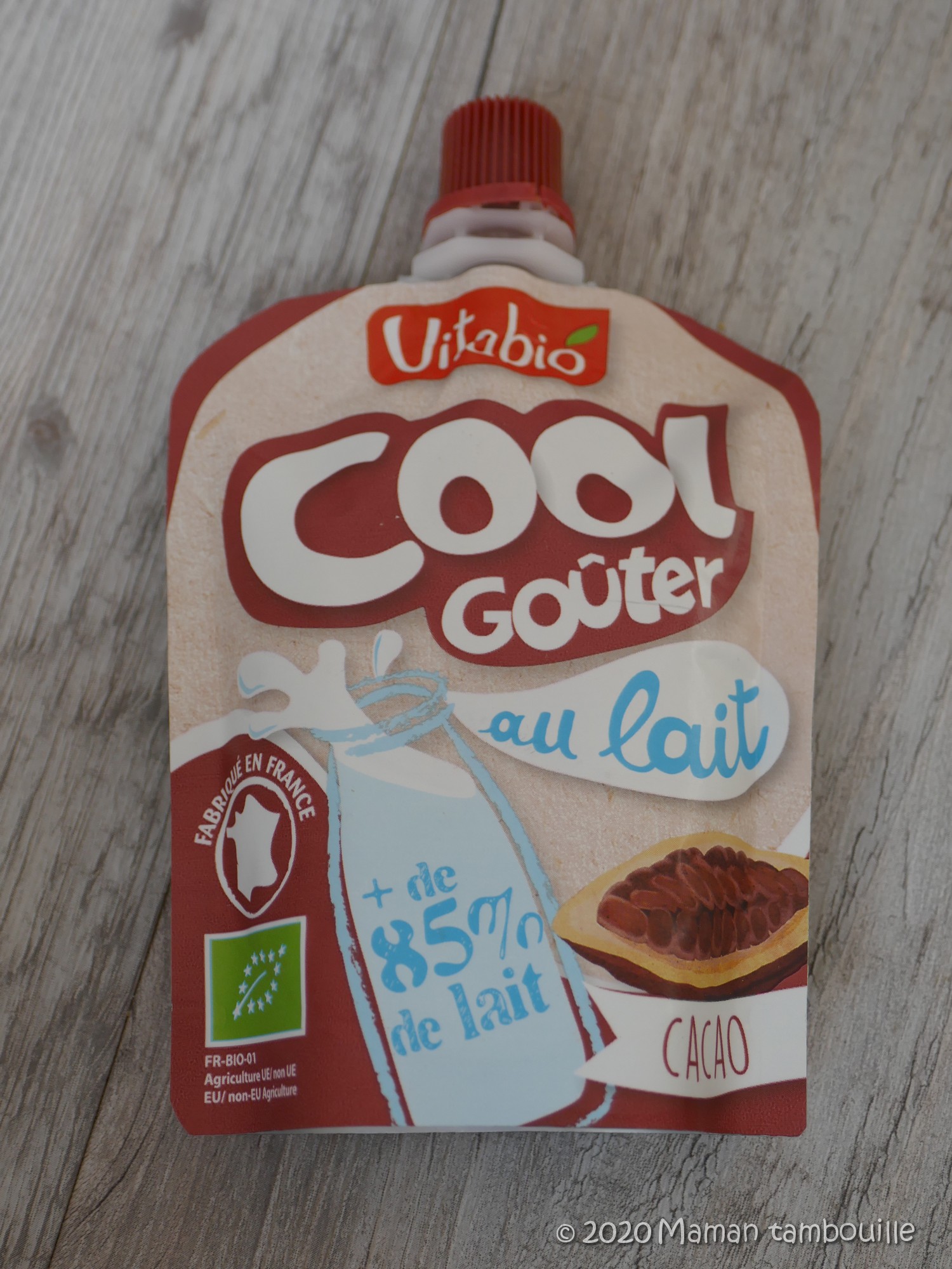 - une gourde Cool Goûter cacao au lait Vitabio. Prix: 4€59 les 4