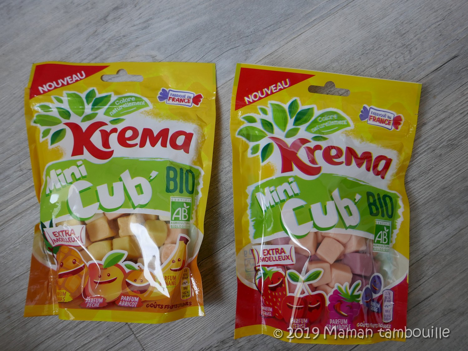 • des minis cub Bio Krema. Prix: 1€90. Les abonnés ont reçu un des 2 paquets.