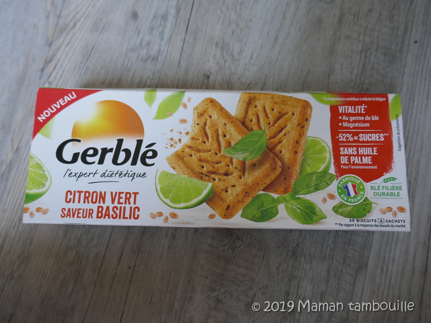 • des biscuits Gerblé Citron vert et basilic. Prix: 1€99