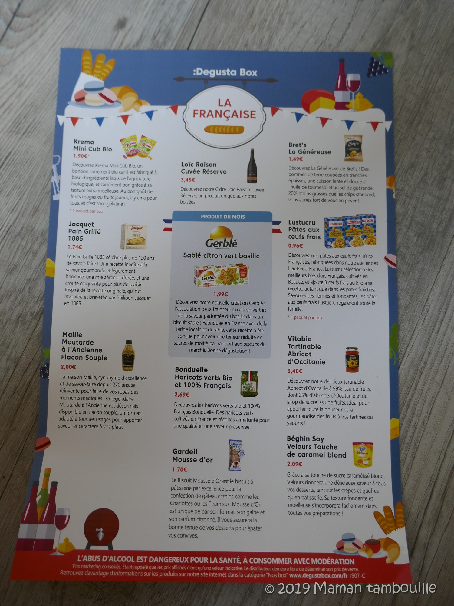 • des biscuits Gardeil Mousse d’or. Prix: 1€70. Uniquement dans les box sans alcool.