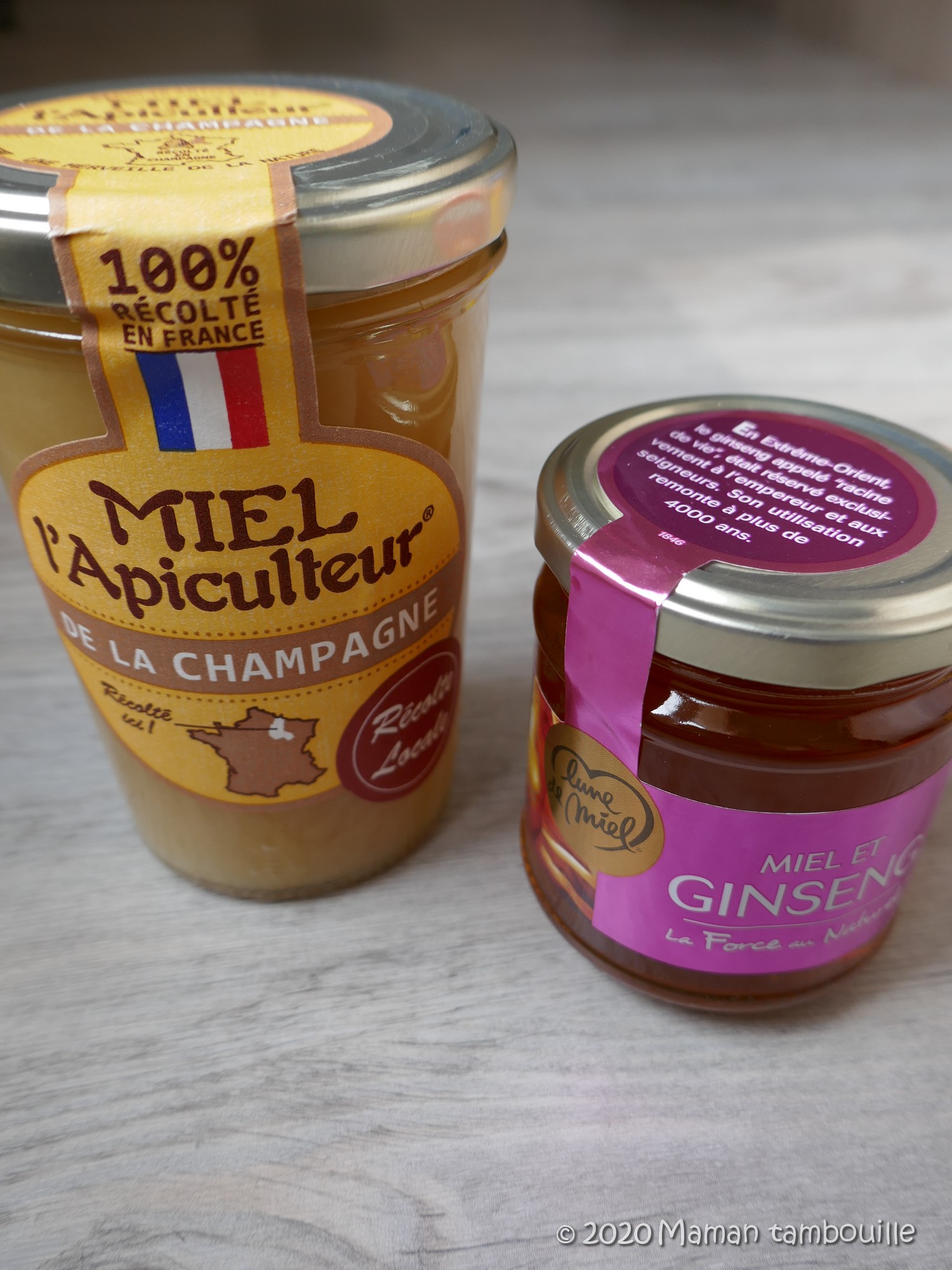 - du miel de la Champagne l’apiculteur et du miel et Ginseng Lune de miel. Prix: 7€20. Les abonnés ont reçu un des 2 miels.