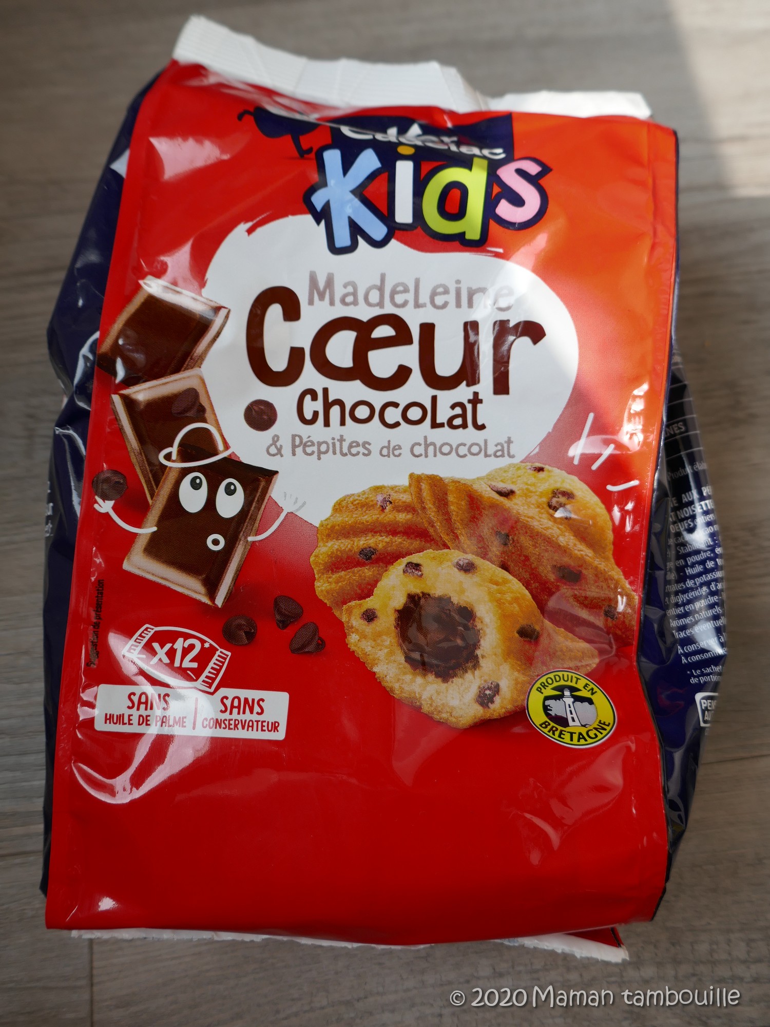 - des madeleines Coeur chocolat Ker Cadelac Kids. Prix: 2€69