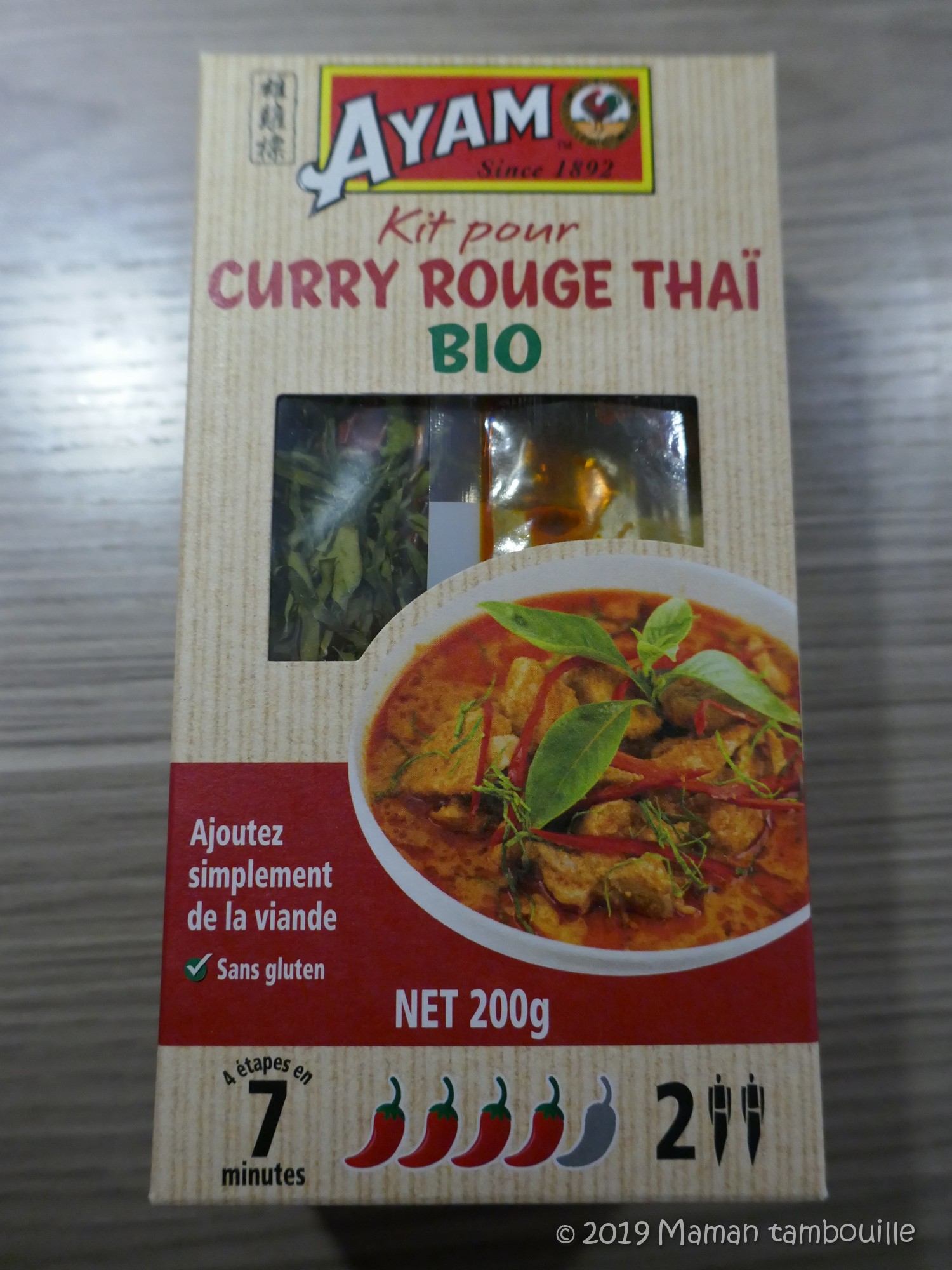 - du curry rouge Thaï Ayam Bio. Prix: 3€99