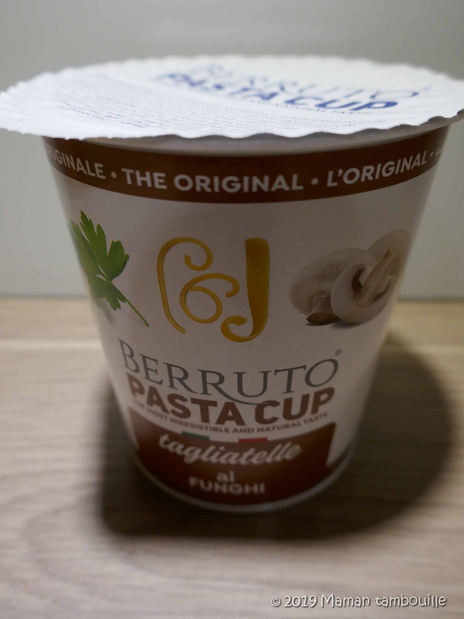 - des pâtes aux champignons instantanées Pasta Berruto. Prix: 2€40. Ce produit est uniquement disponible dans les box sans alcool.