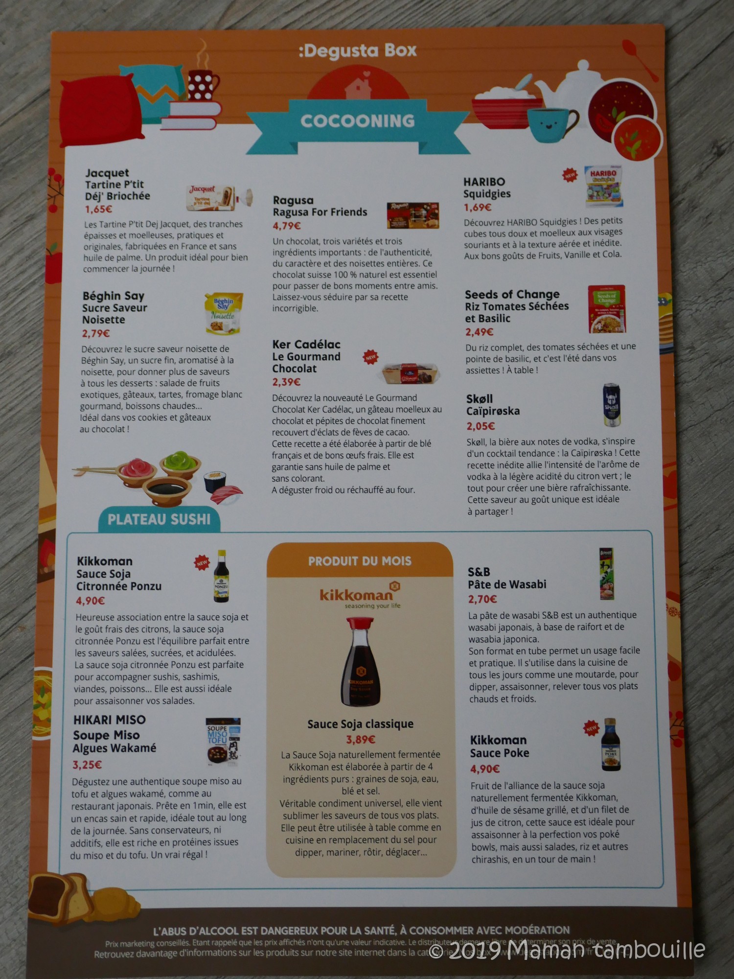 - des sauces Kikkoman: soja, ponzu et poke. Les abonnés ont reçu la carafe et 2 des 3 sauces. Prix: Ponzu 4€90/ Soja 3€89/ Poke 4€90