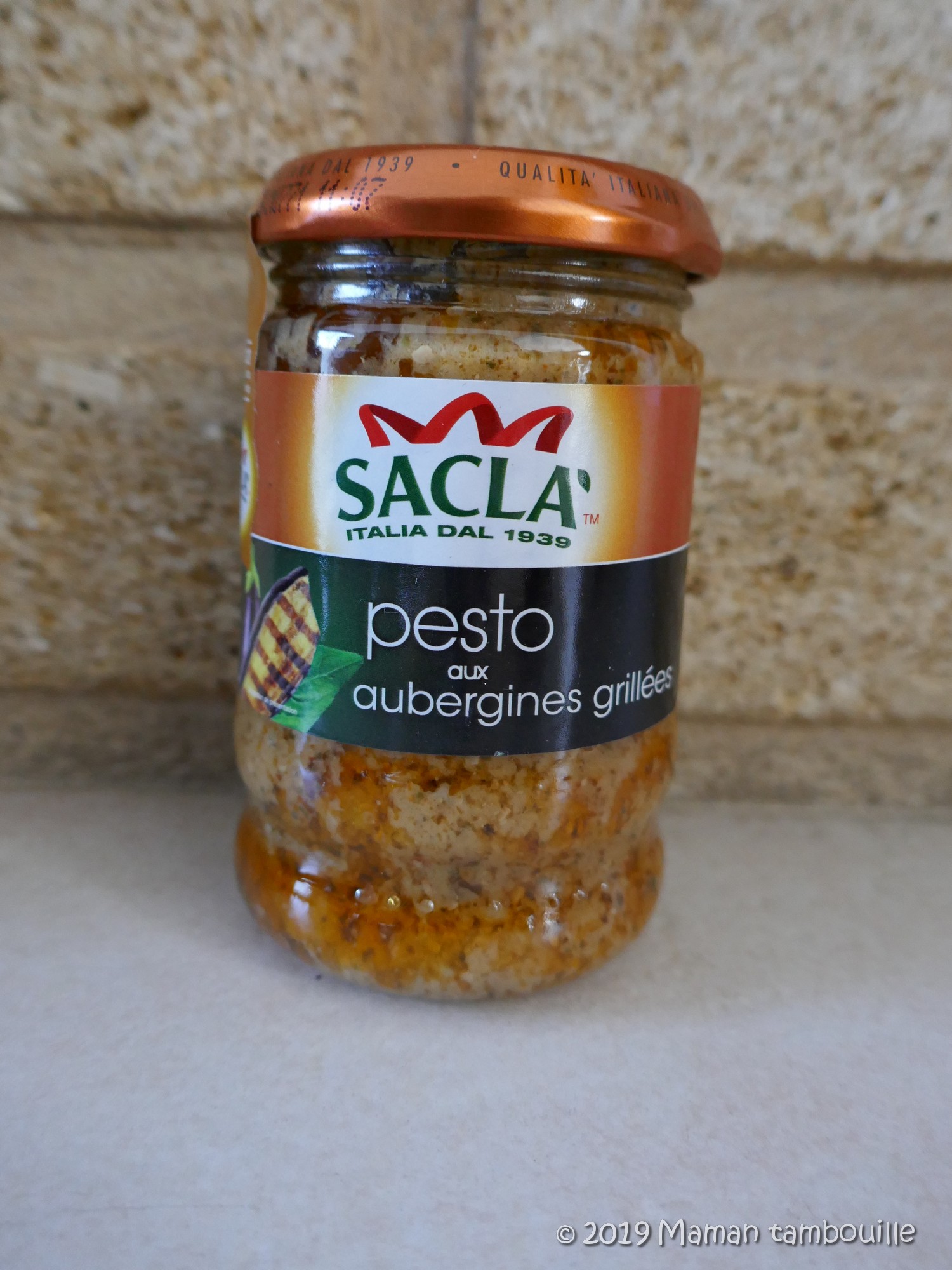 - du pesto aux aubergines grillées Sacla. Prix: 2€70