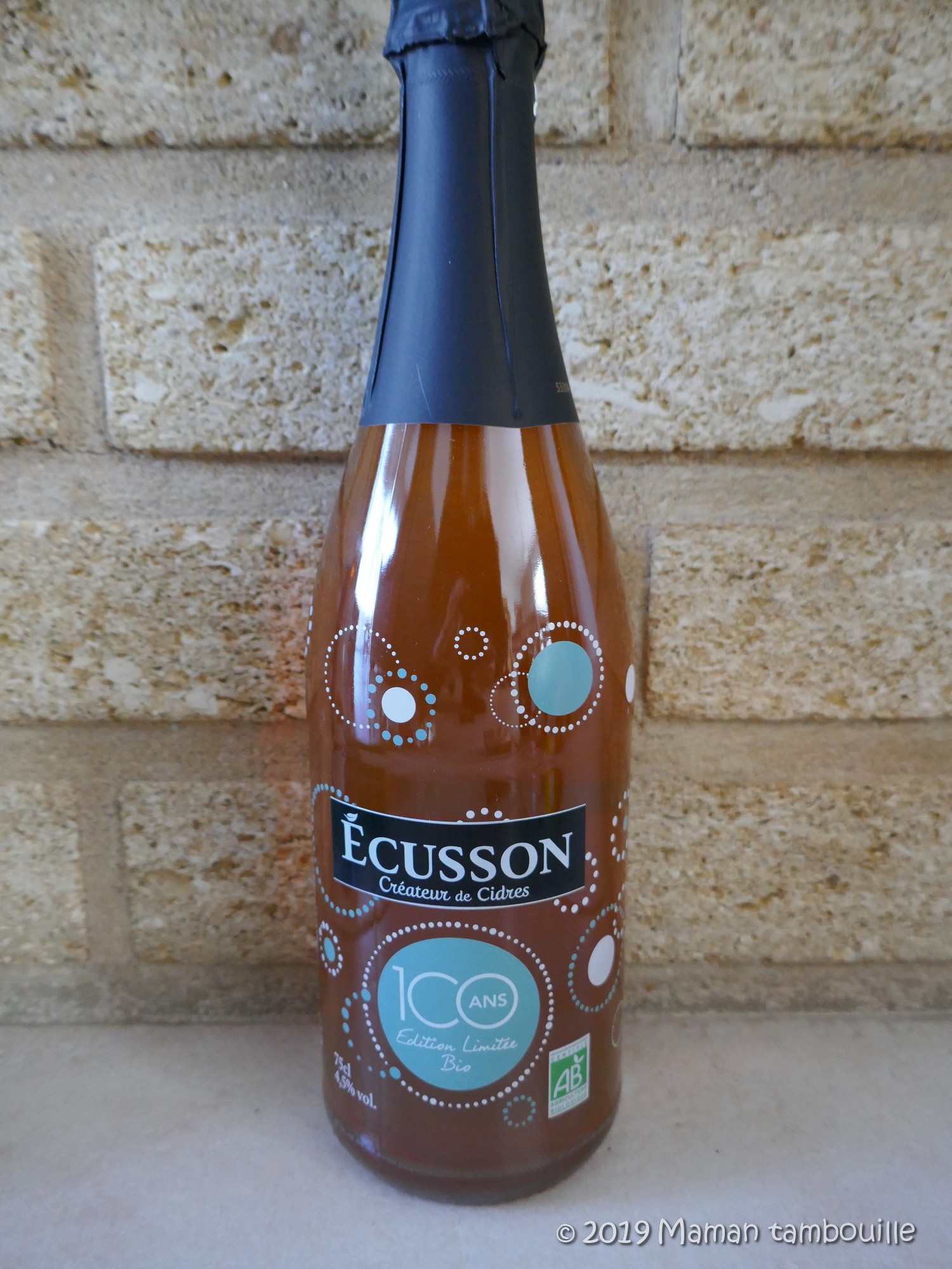 - du cidre Ecusson Bio 100 ans. (Uniquement dans les box avec alcool) Prix: 3€45