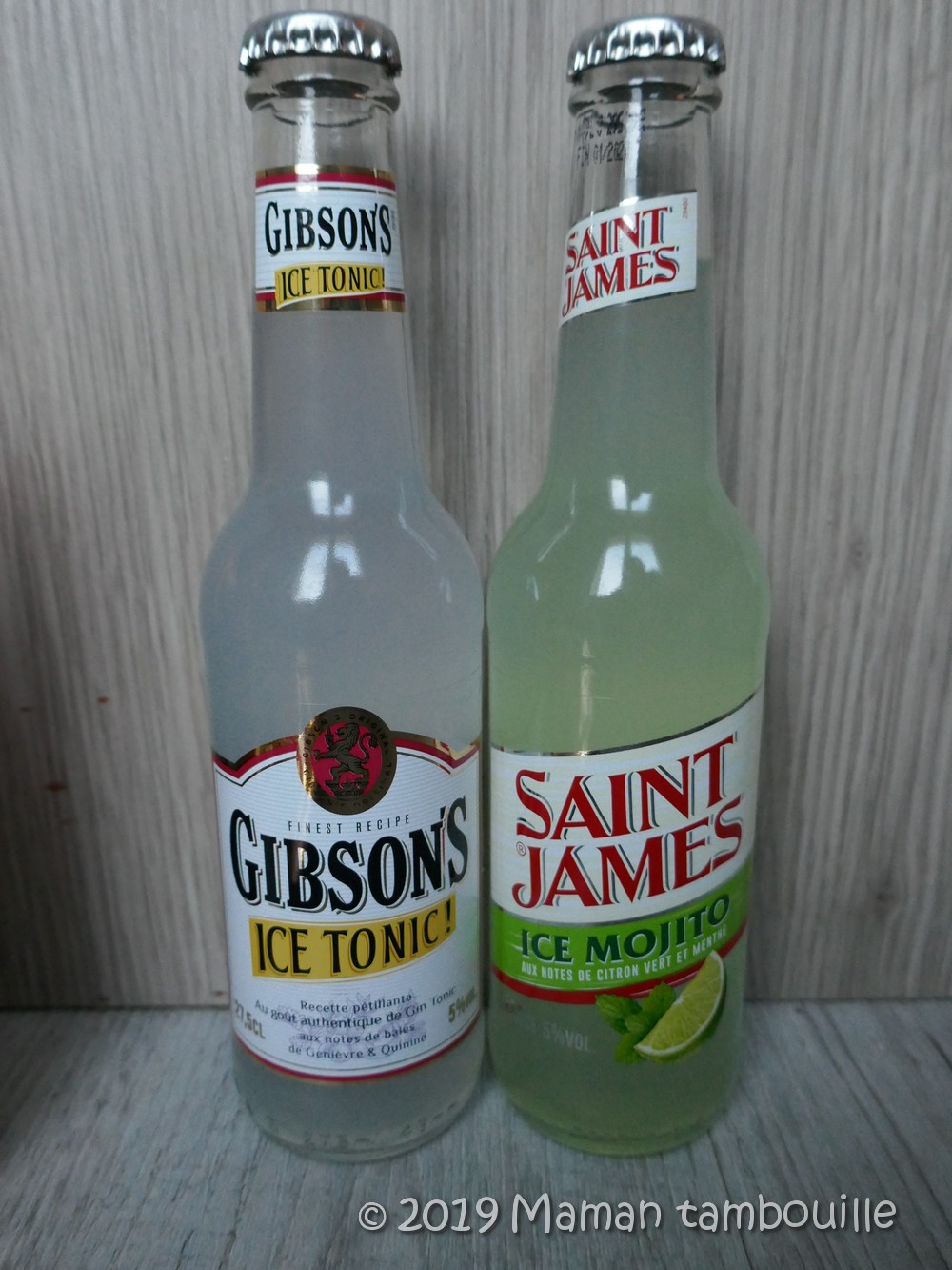 - 2 bouteilles Saint James Ice Mojito et Gibson’s Ice tonic. Prix: 4€95 le pack de 4 (Dans les box avec alcool uniquement)