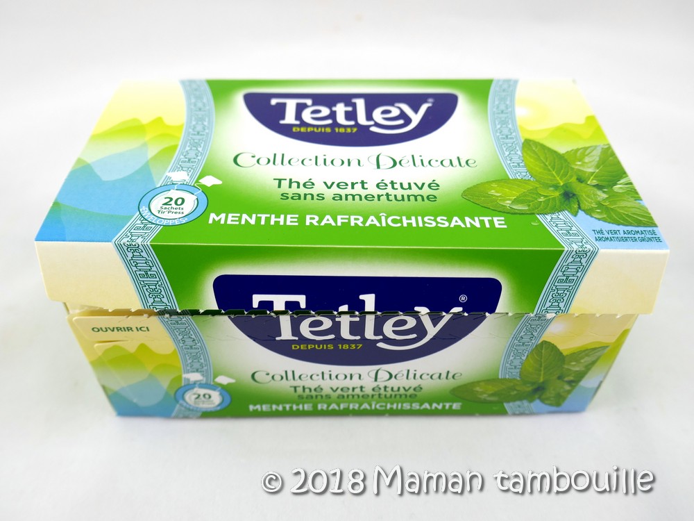 - du thé vert à la menthe Tetley. Prix: 2€49
