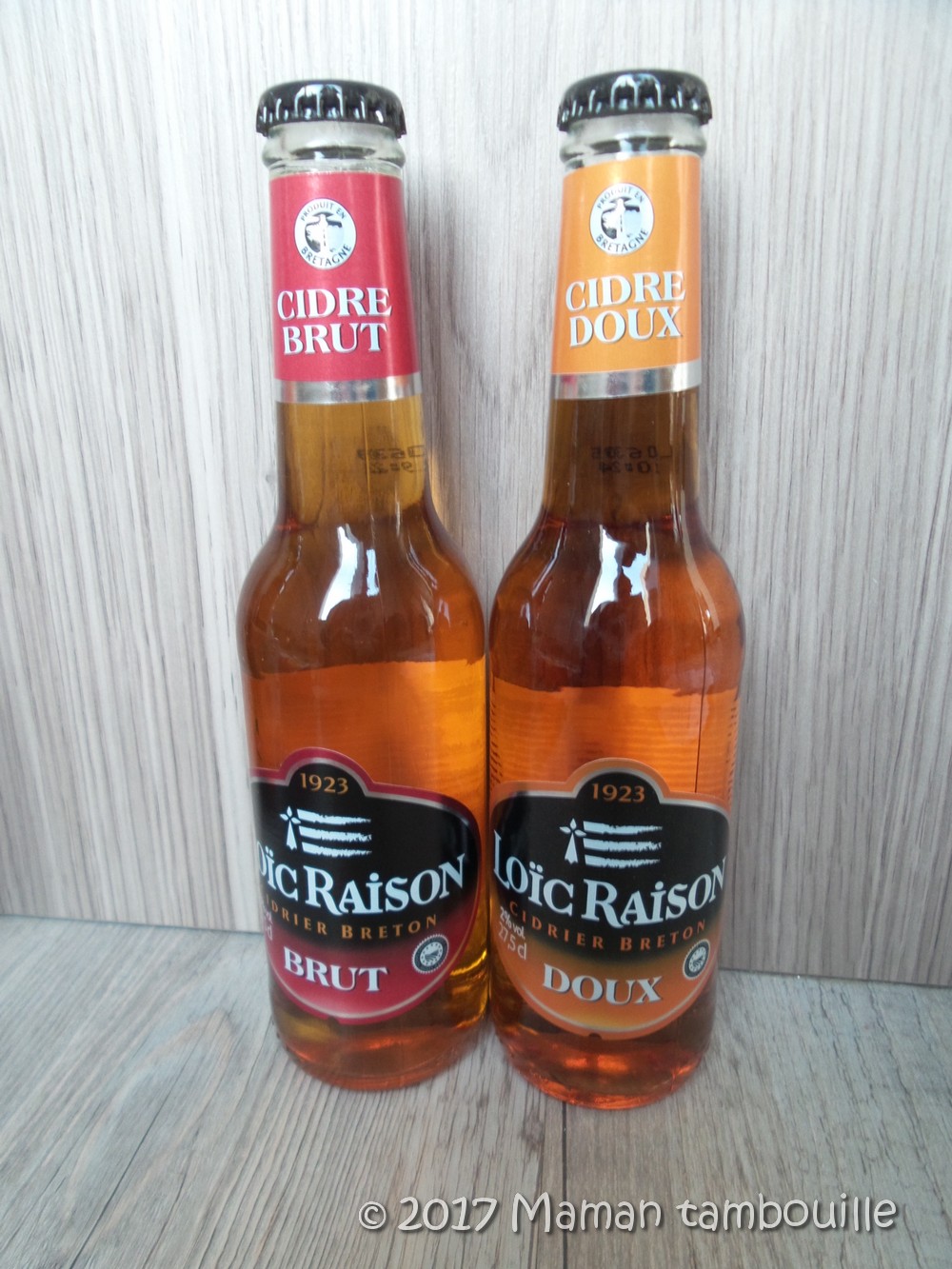 • 2 bouteilles de cidre Loïc Raison. Un classique qui passe toujours, on aime beaucoup à la maison. Prix: 1,10€ l’unité.