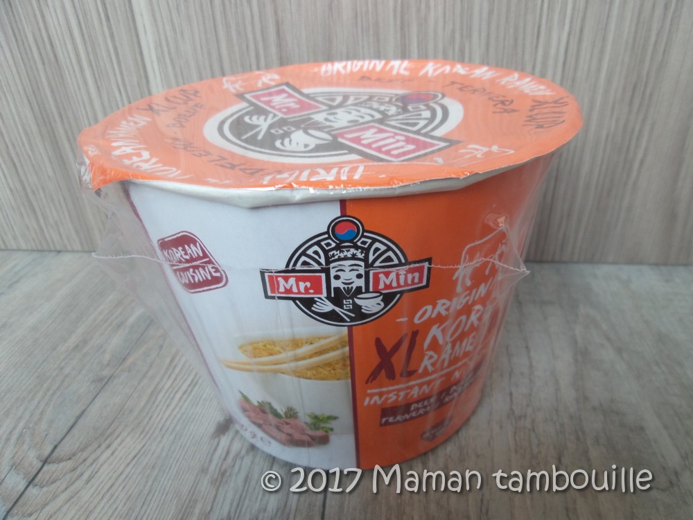 • Un gros bol de nouilles chinoises Mr Min. Je ne l’ai pas encore goûté, je le garde pour emmener au ski dans quelques jours ;-). Prix: 2€20