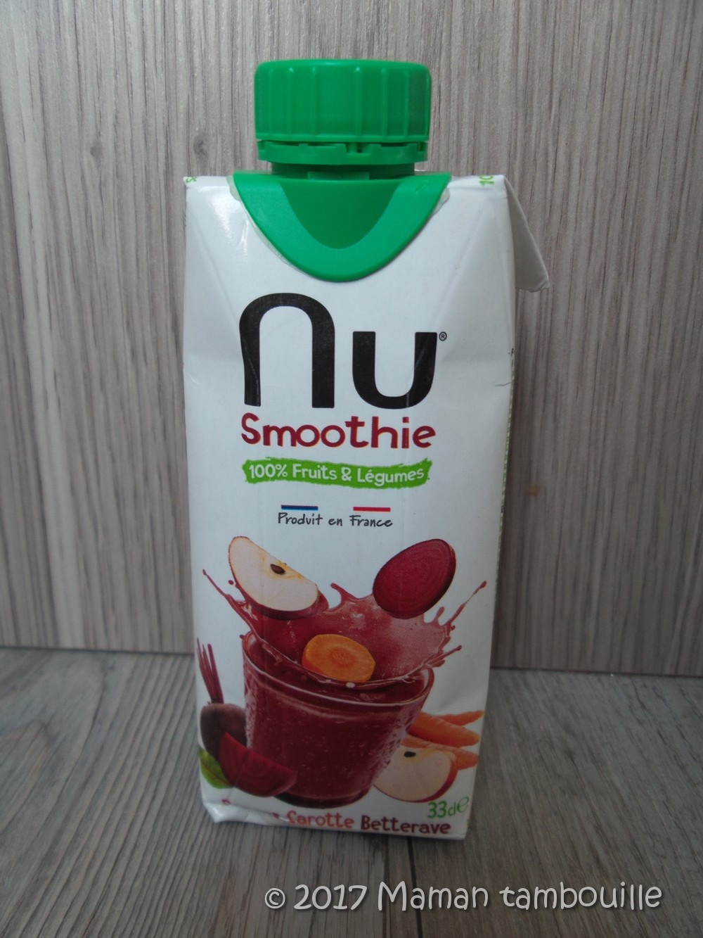 • un smoothie Nu carotte et betterave. J’adore les smoothies, celui ci est original et très agréable servi bien frais. Prix: 2€20. Produit non présent dans toutes les box.