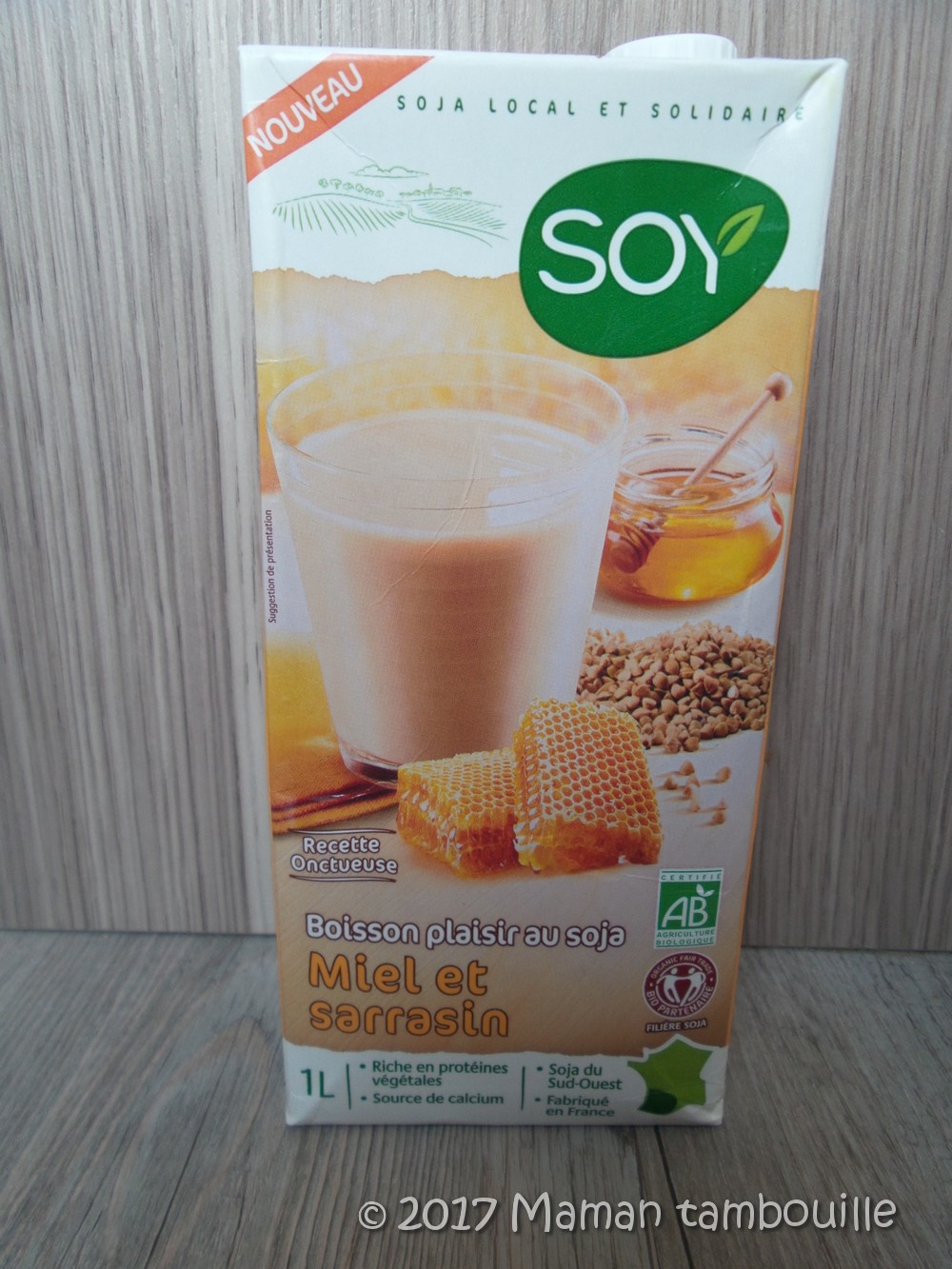 • un lait de soja miel et sarrasin Soy. On a beaucoup aimé. C’est dommage je n’ai pas encore réussi à le trouver en magasin. Prix: 2€90
