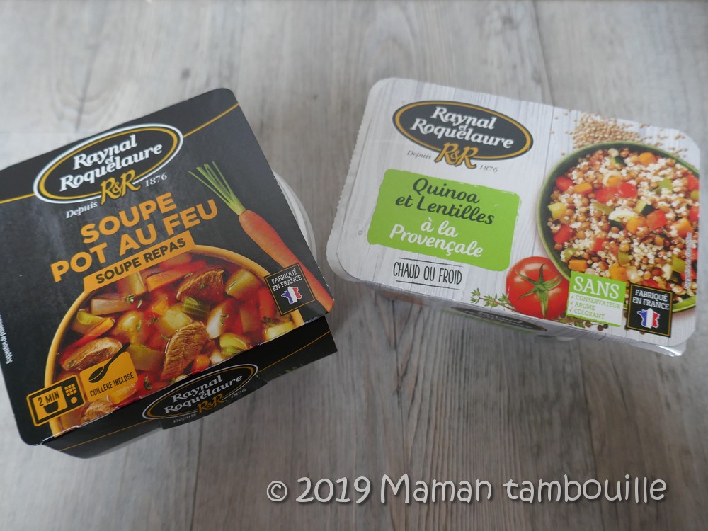 • du quinoa aux lentilles Raynal et Roquelaure. Prix: 2€49 et de la soupe pot au feu. Prix: 2€65