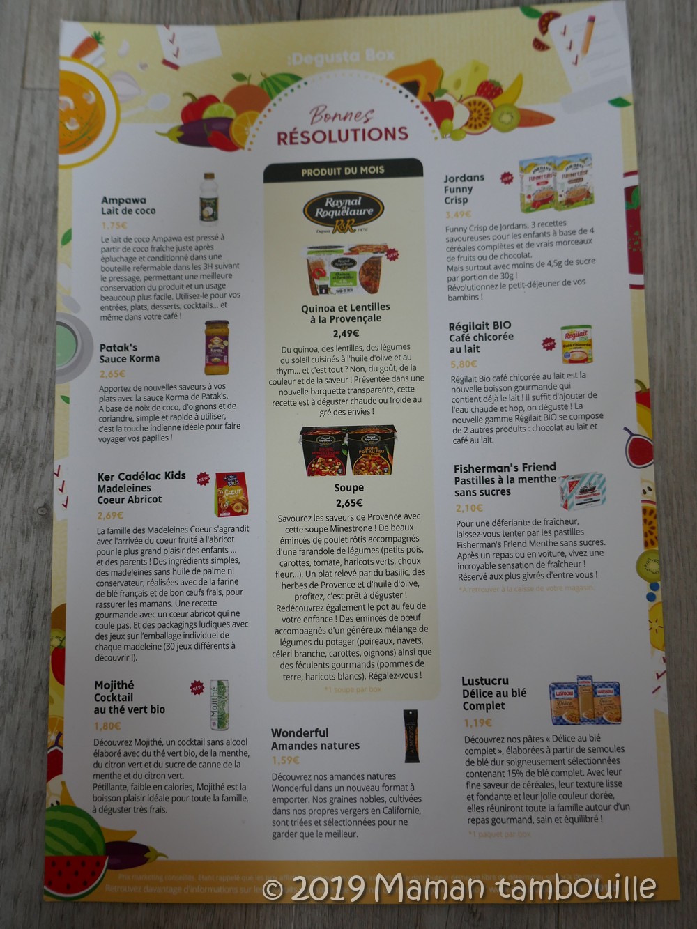 Présentation de la Degustabox de janvier « Bonnes résolutions ».