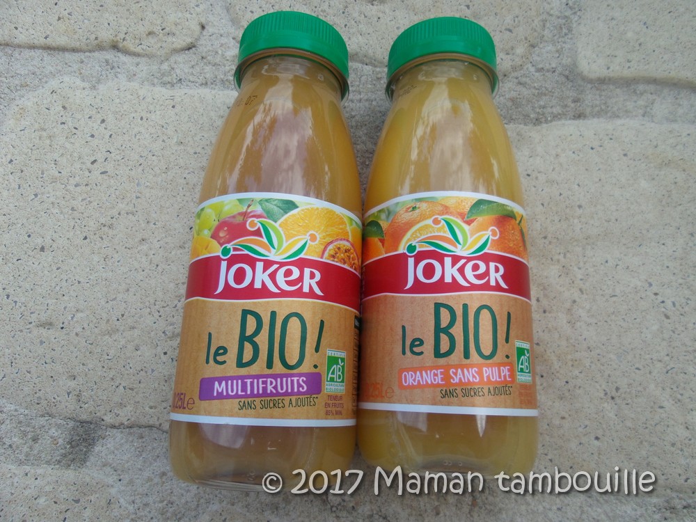 - 2 bouteilles de jus de fruits Bio Joker. Prix 0,90 x 2