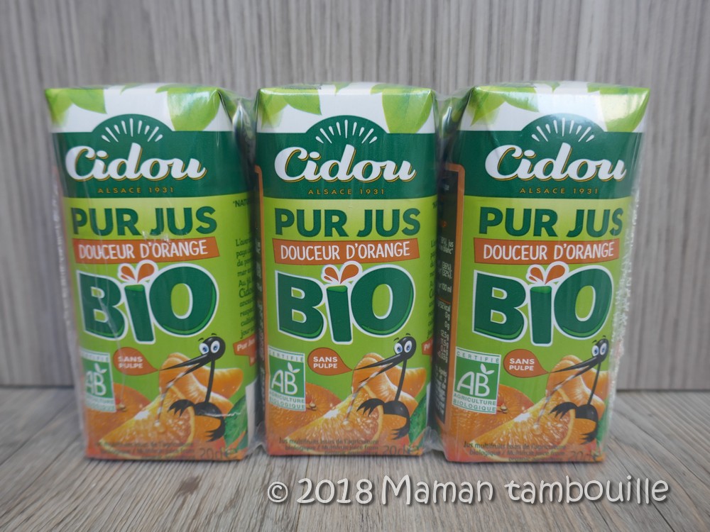 • du jus d’orange Bio Cidou. Prix: 2€30