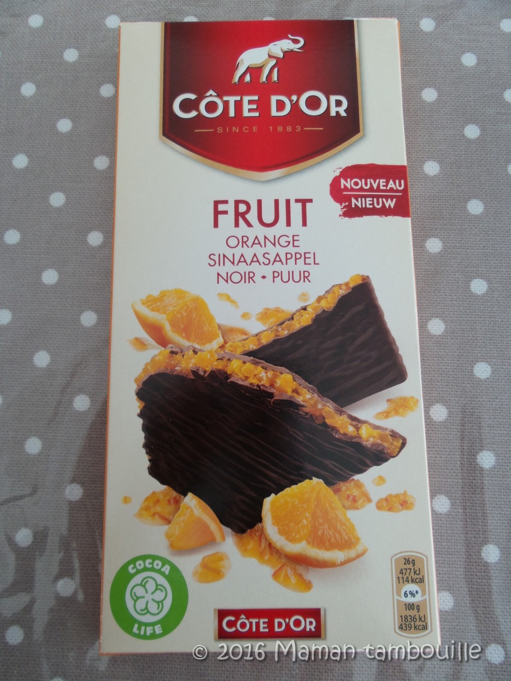 - Une tablette de chocolat Côte d’or à l’orange. Prix: 2€69