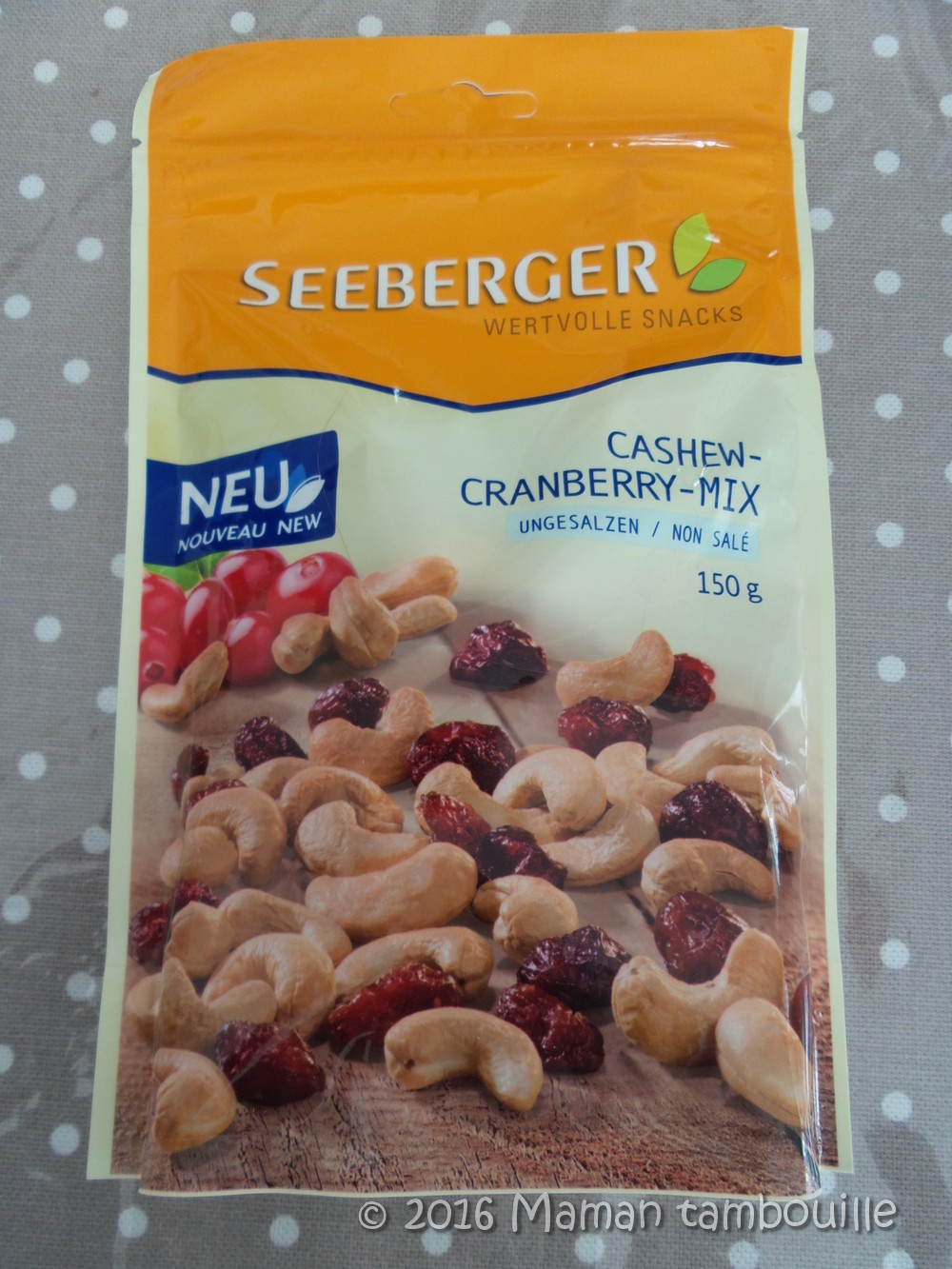 - un sachet de noix de cajou et cranberries Seeberger. Prix: 3€79