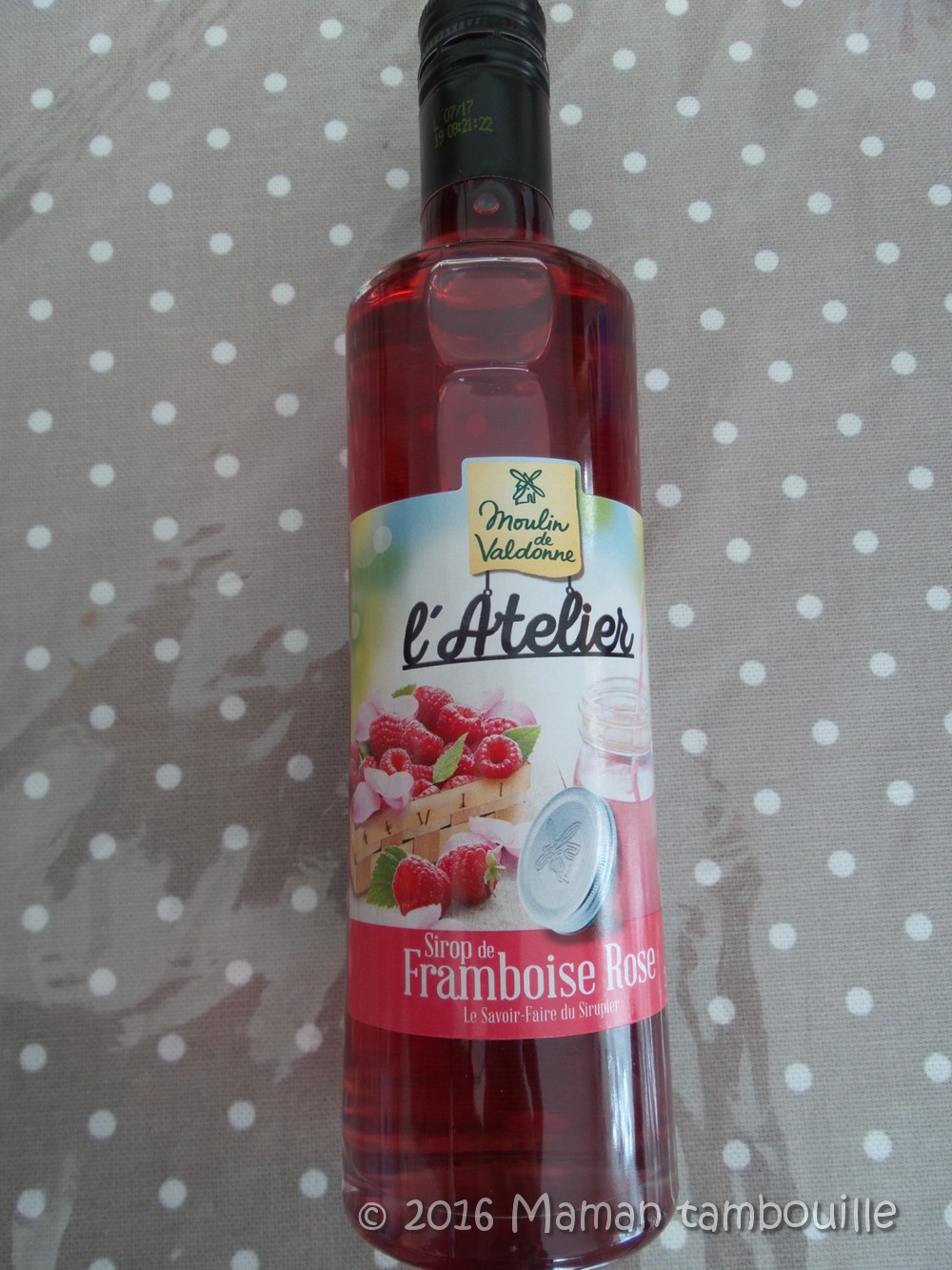 - Une bouteille de sirop framboise/rose Moulin de Valdonne. Prix: 2€45