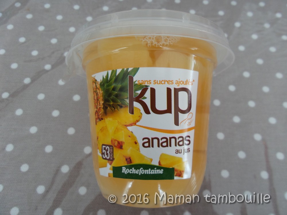 - une tasse d’ananas au jus Rochefontaine. Prix: 1€65